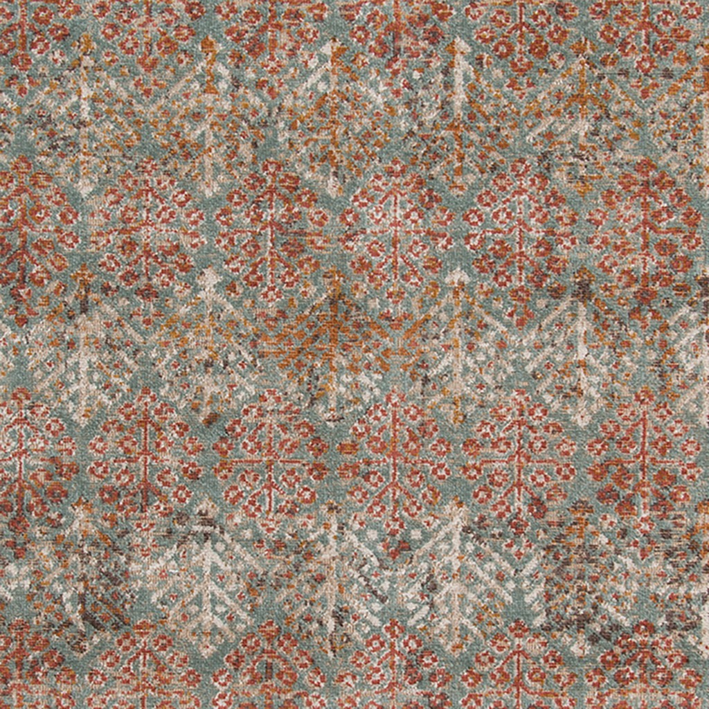 Add great coloration and comfortable texture to your space with this 7 feet x 9 feet teal southwestern power loom area rug with fringe. This rectangle shaped rug features a southwestern design in teal to give it visual interest. A classic shape marries with good looking design for your space Ideal for spaces with kids and pets, this rug is stain resistant to help repel stains and spilled liquids. Area Rugs help to give warmth and sense of home to your space. 0.15 inches H x 90 inches W x 114 inches D