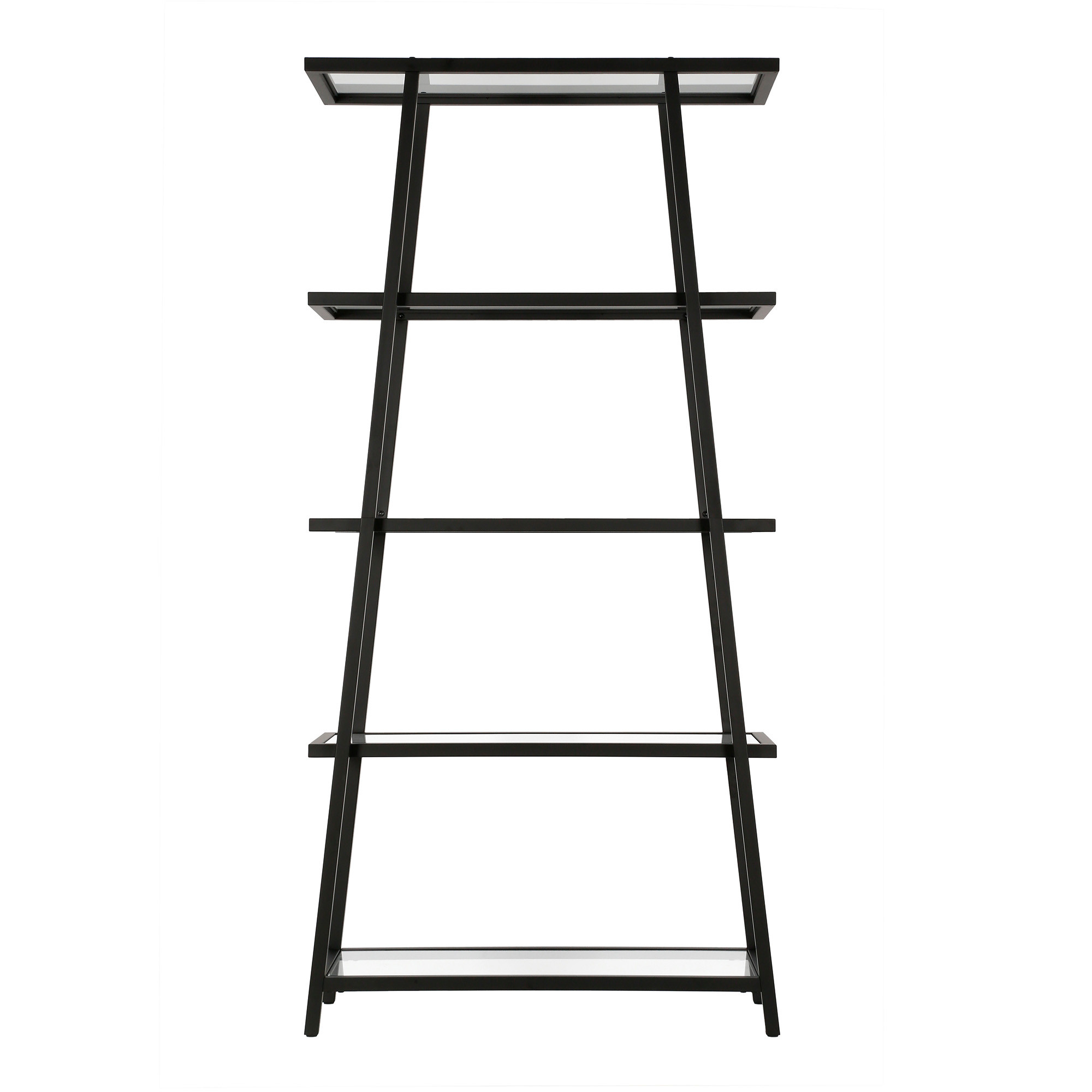 70″ Black Metal and Glass Five Tier Etagere Bookcase