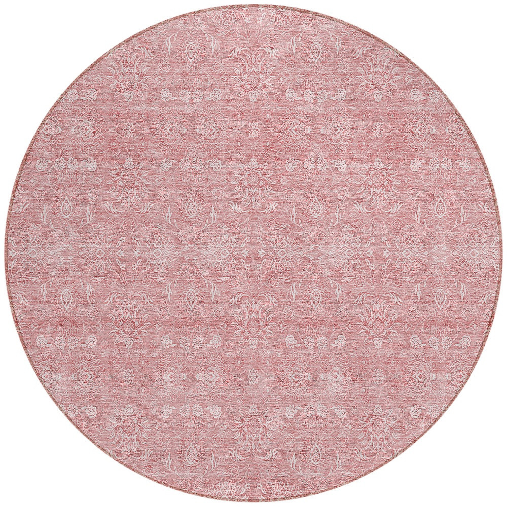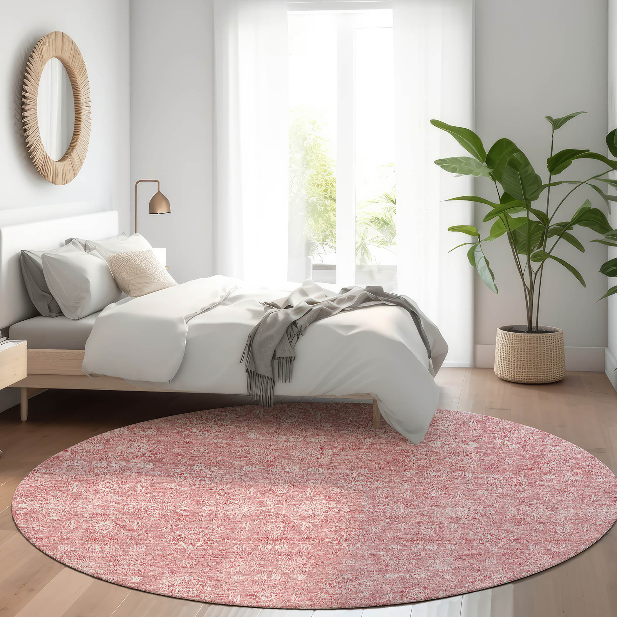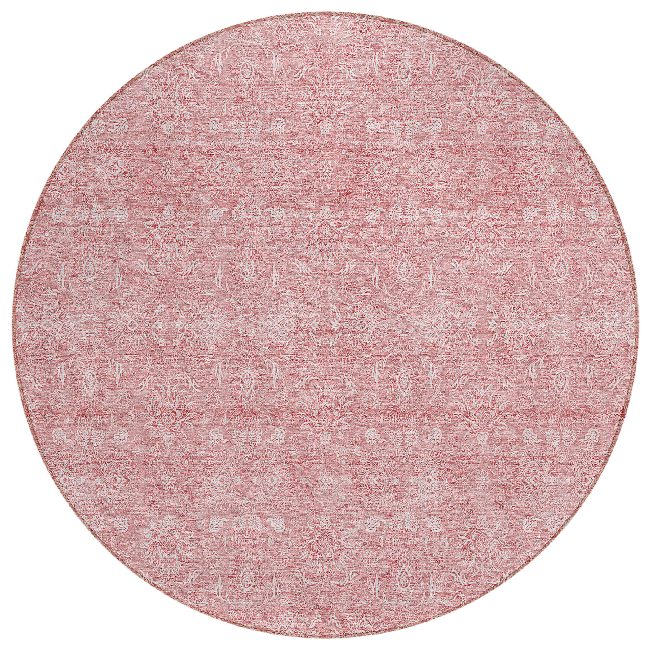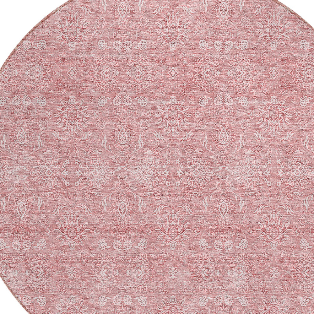 8′ Blush Pink And Ivory Round Floral Washable Indoor Outdoor Area Rug