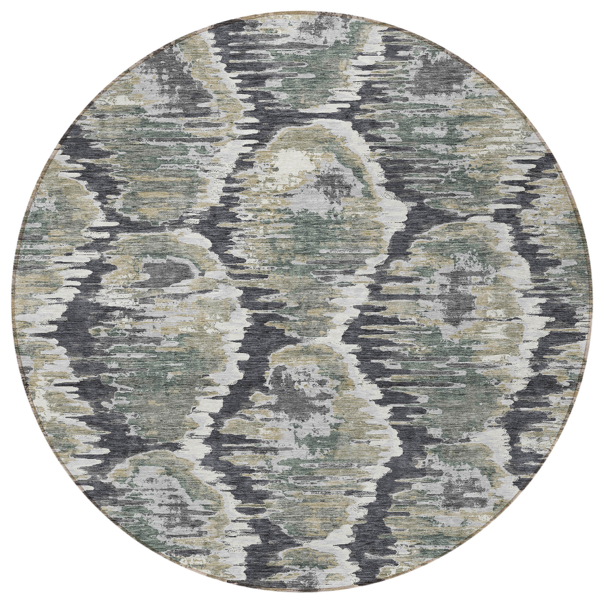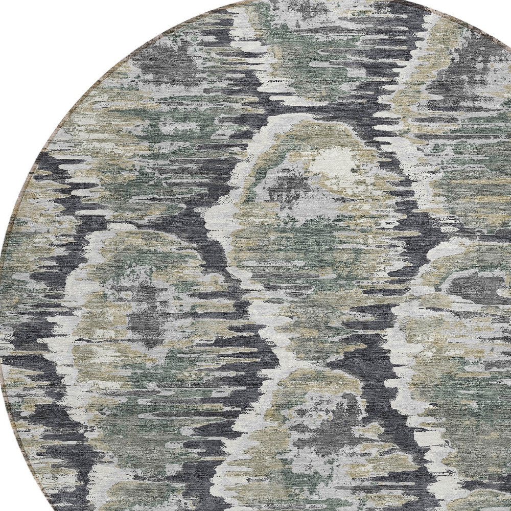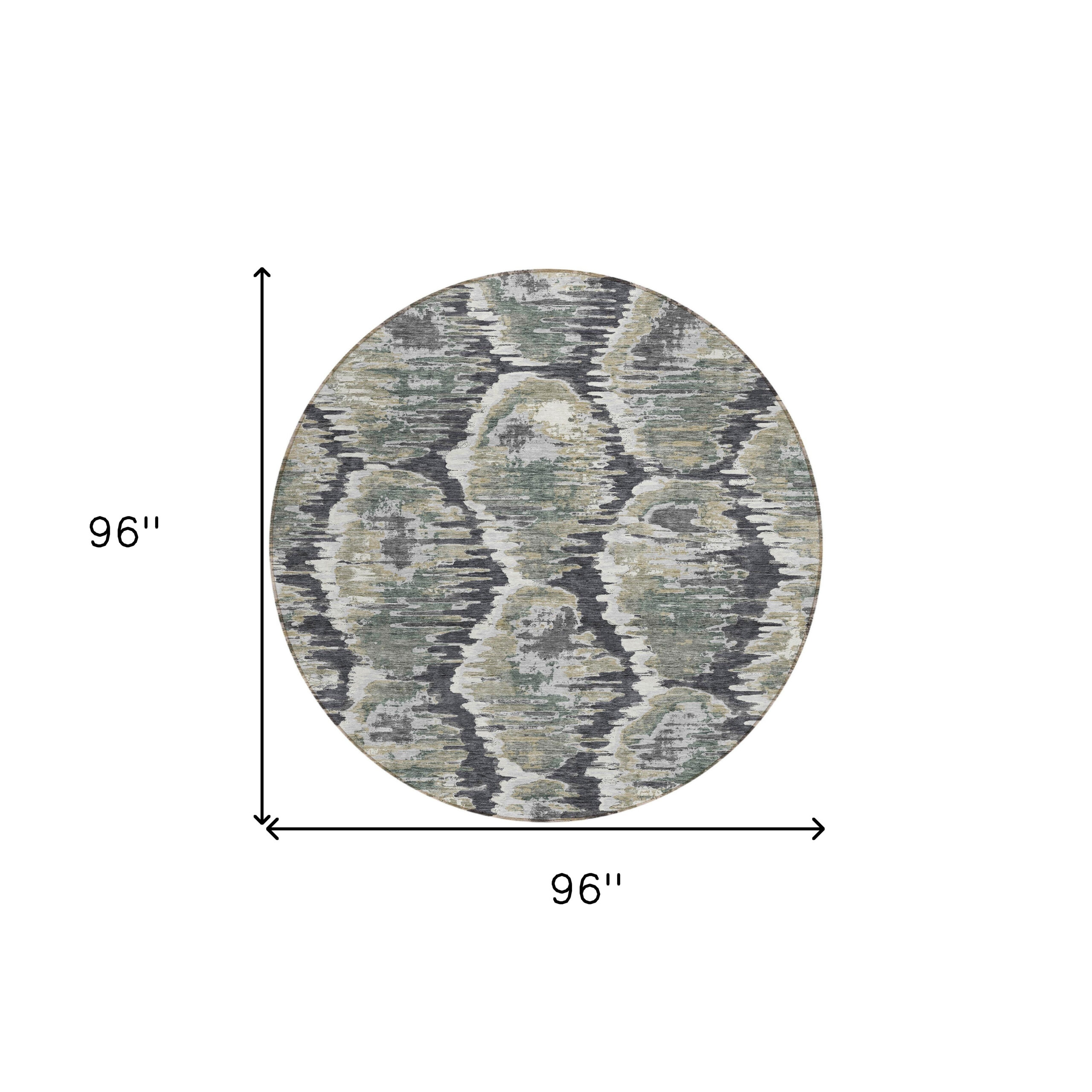 8′ Charcoal Gray And Silver Round Abstract Washable Indoor Outdoor Area Rug