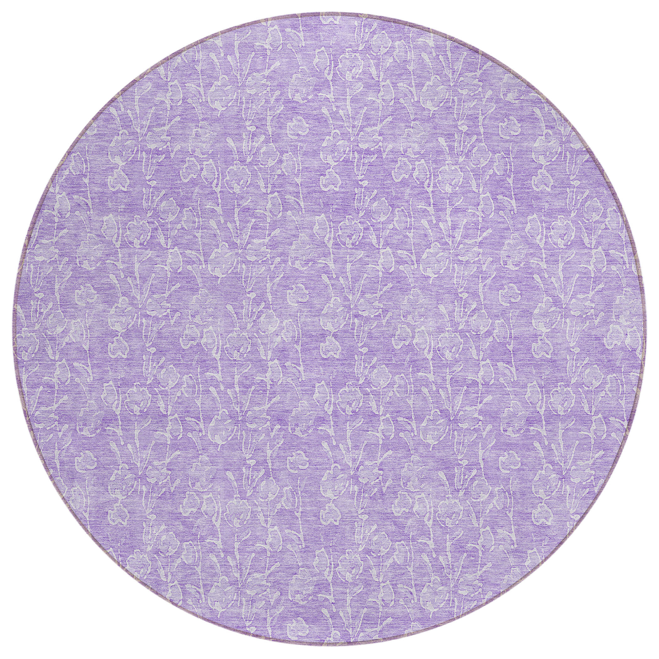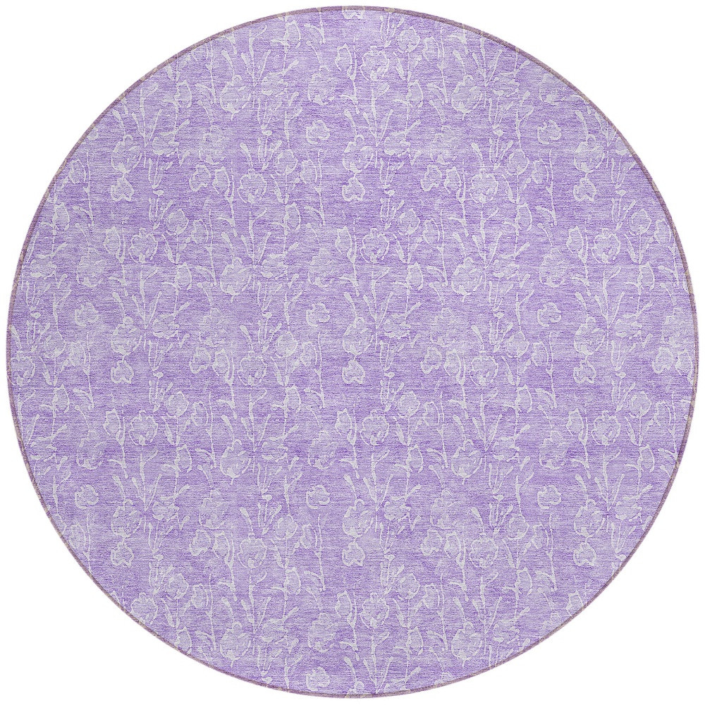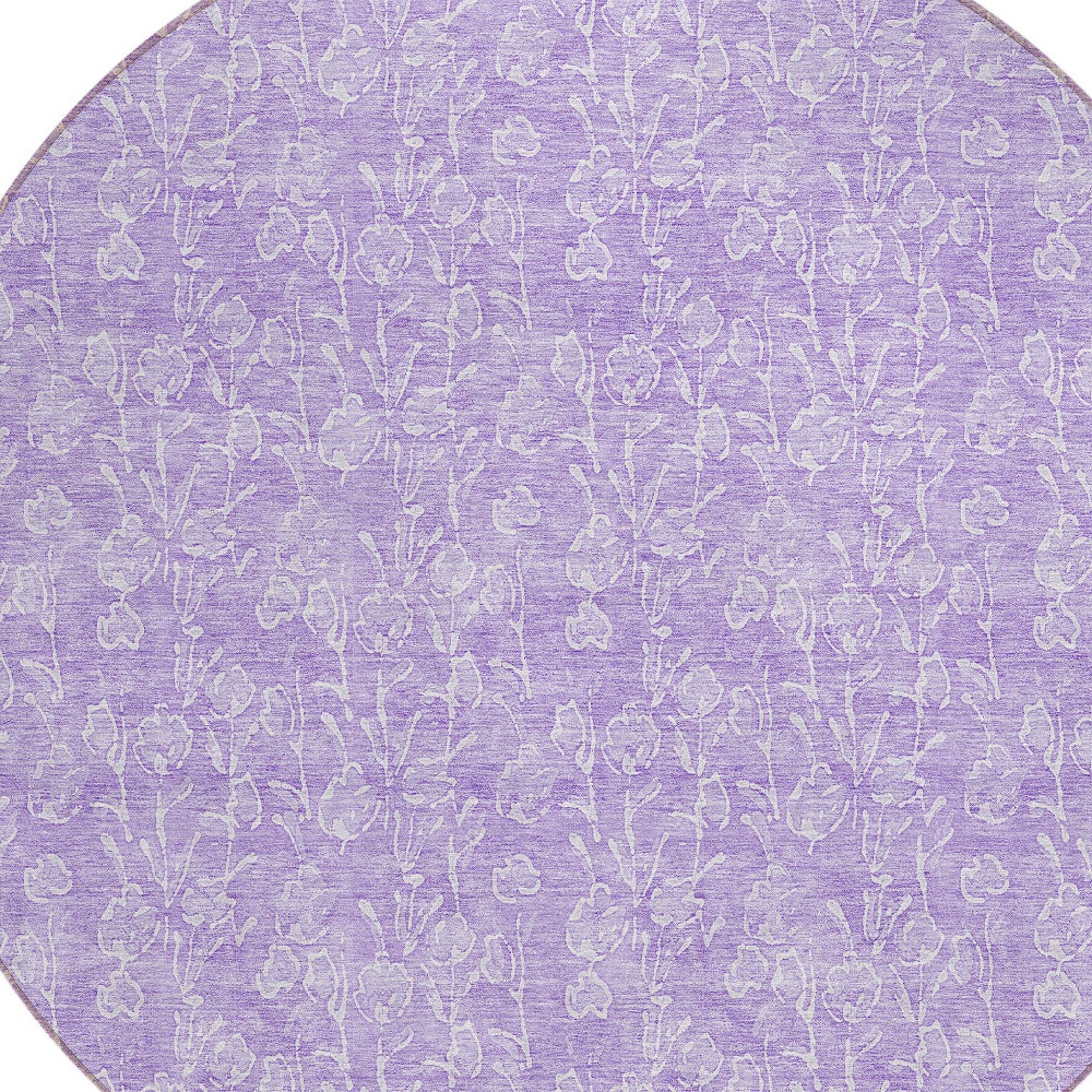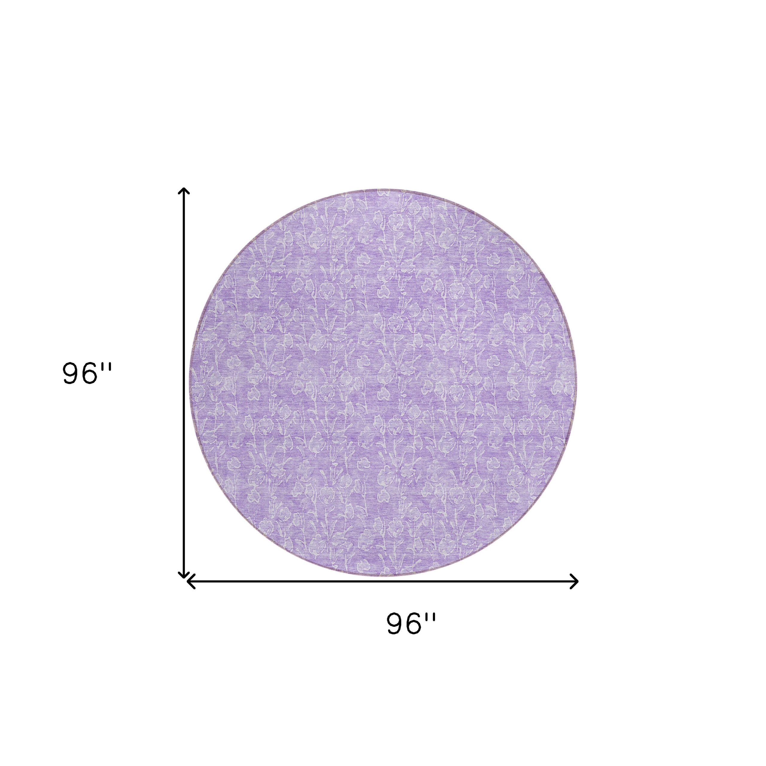 8′ Lilac And Ivory Round Floral Washable Indoor Outdoor Area Rug