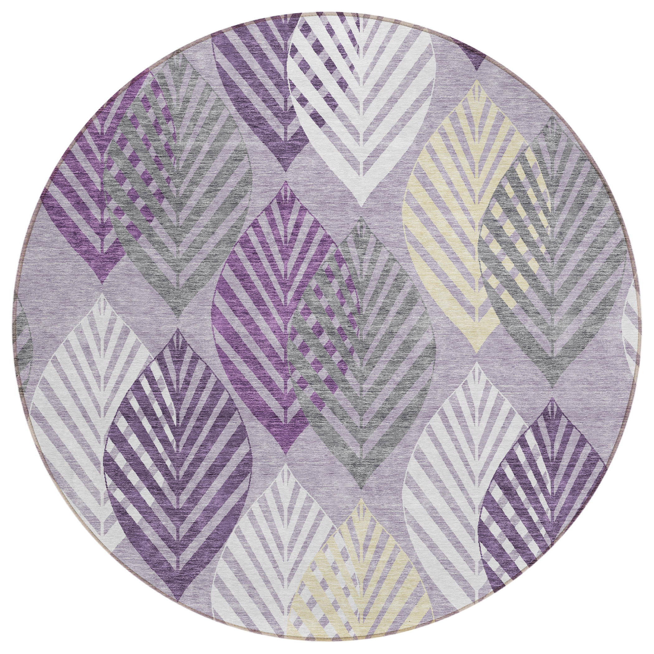 8′ Purple Lavender And Beige Round Floral Washable Indoor Outdoor Area Rug