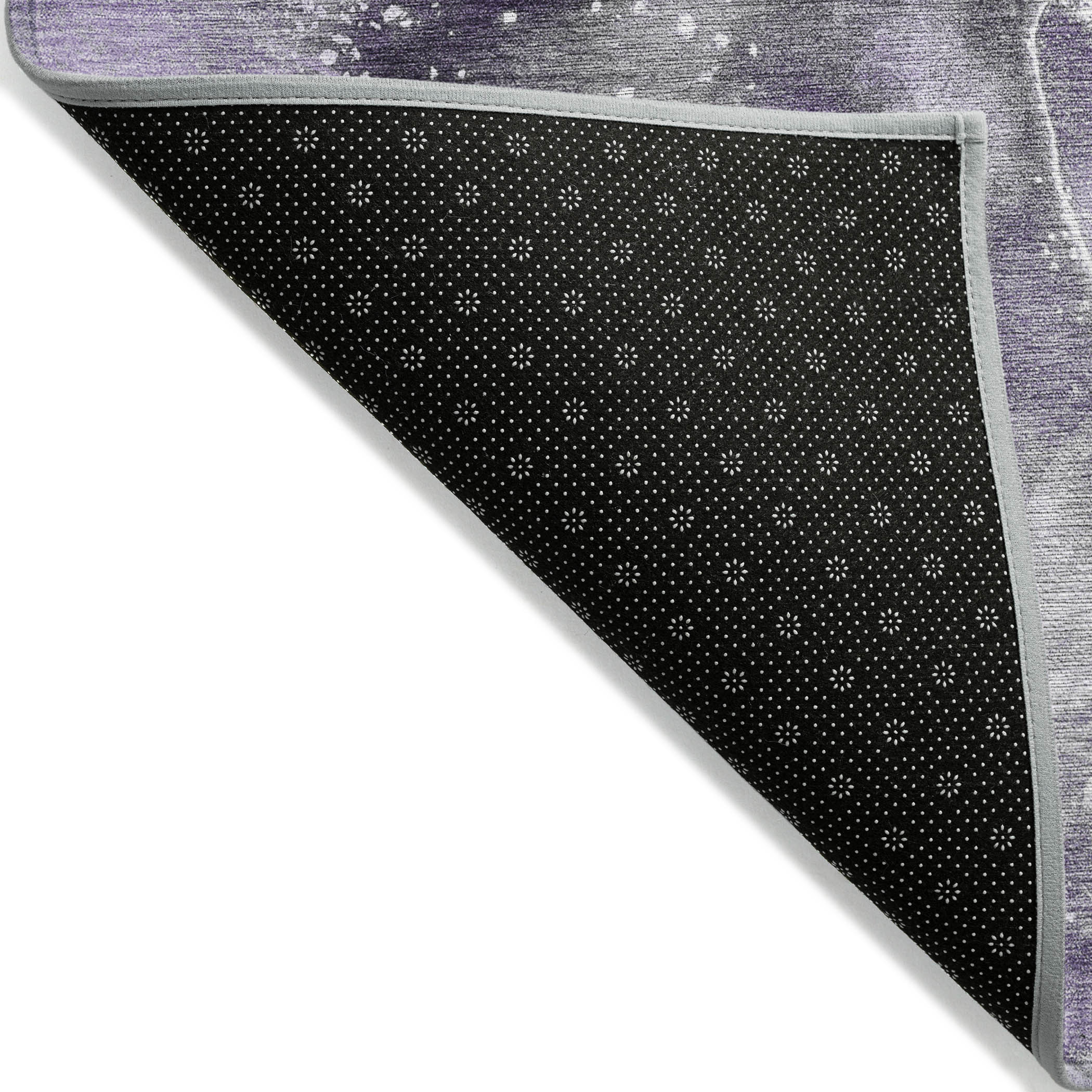 Set an inviting tone in your space with this 8-foot runner gray and purple abstract washable stain resistant non skid indoor outdoor runner rug. This runner shaped rug features a abstract design in gray and purple to give it visual interest. A classic shape marries with good looking design for your space ideal for spaces with kids and pets, this rug is stain resistant to help repel stains and spilled liquids. Area rugs help to give warmth and sense of home to your space. 27-inch H x 90-inch W x 0.19-inch D