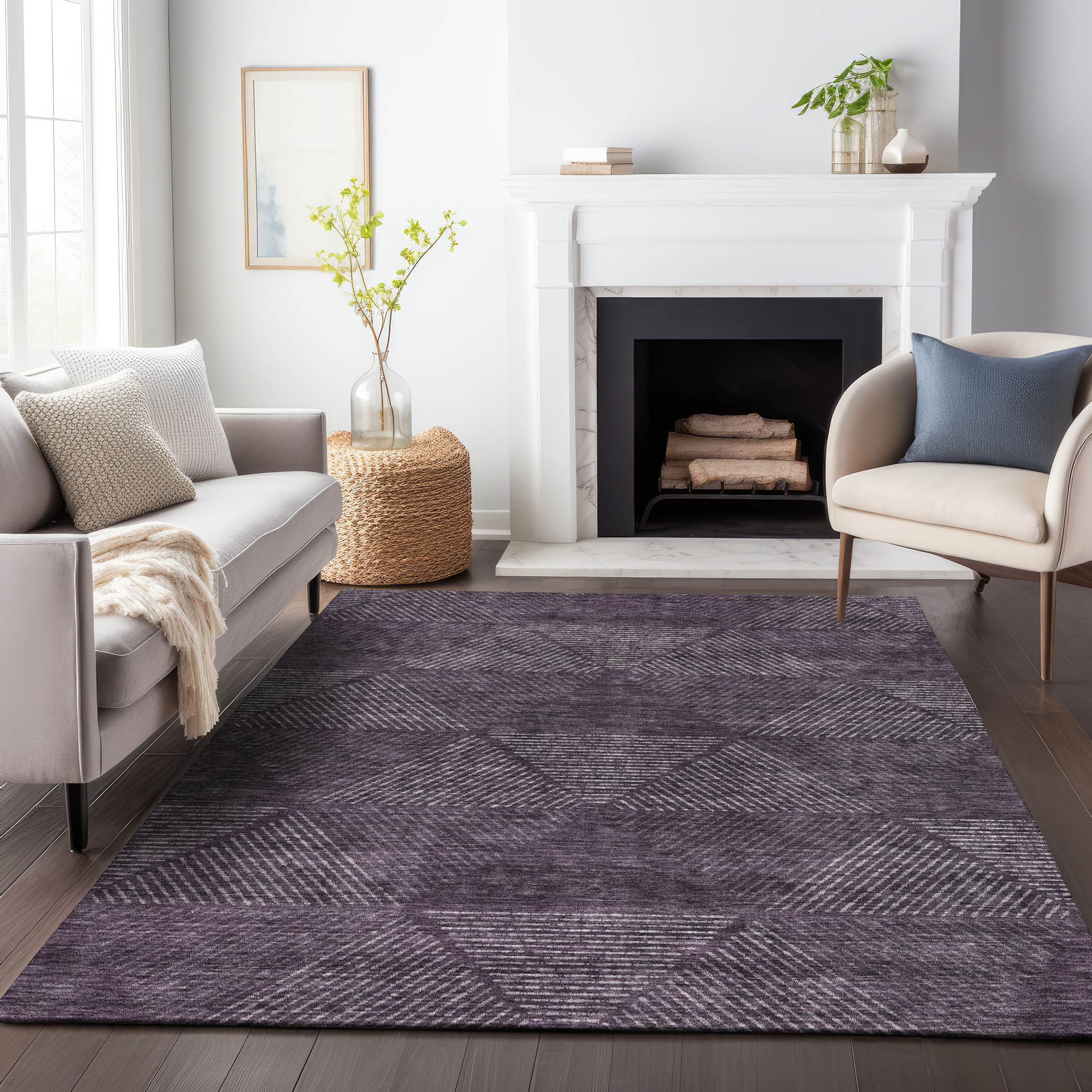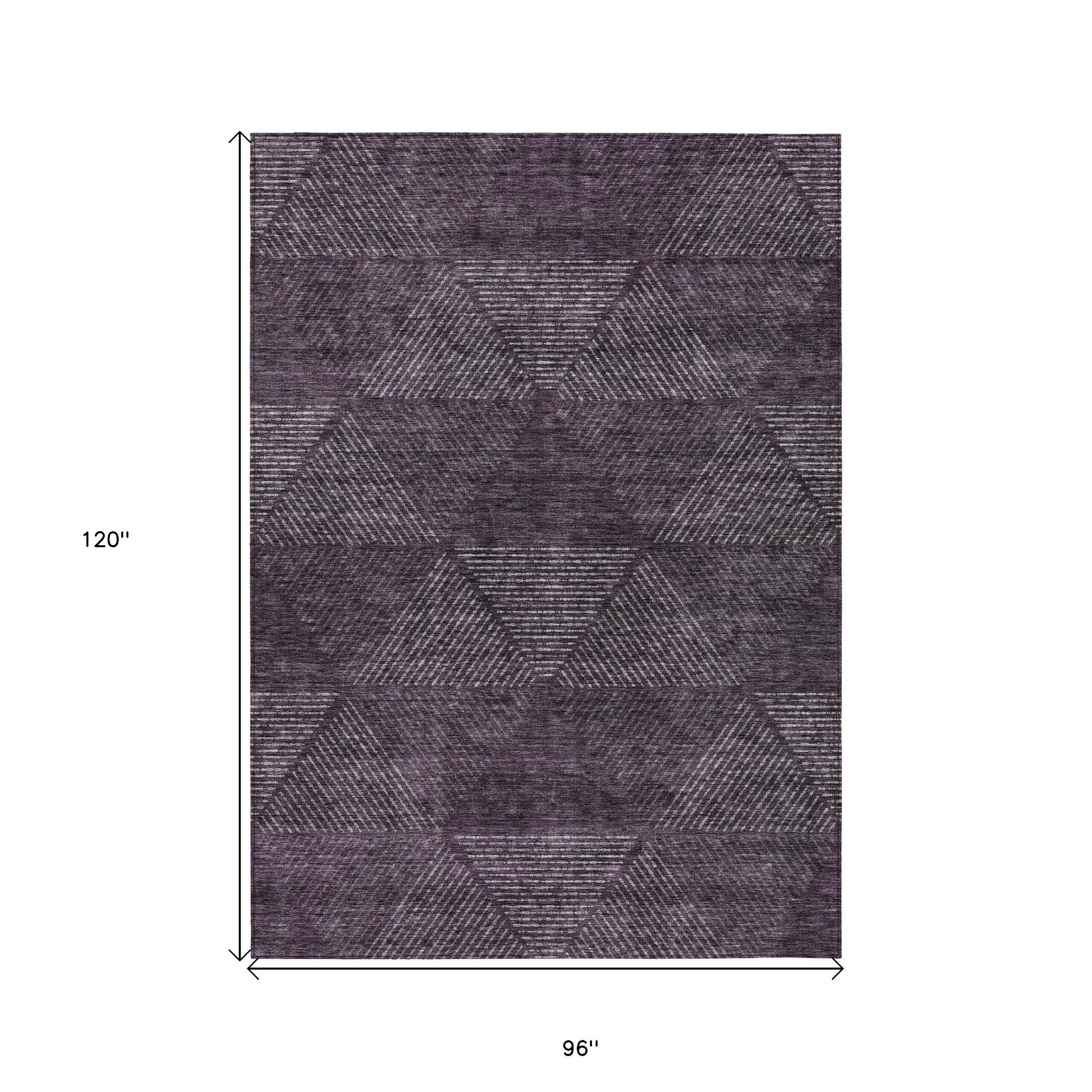 8′ X 10′ Eggplant Purple And Gray Geometric Washable Indoor Outdoor Area Rug