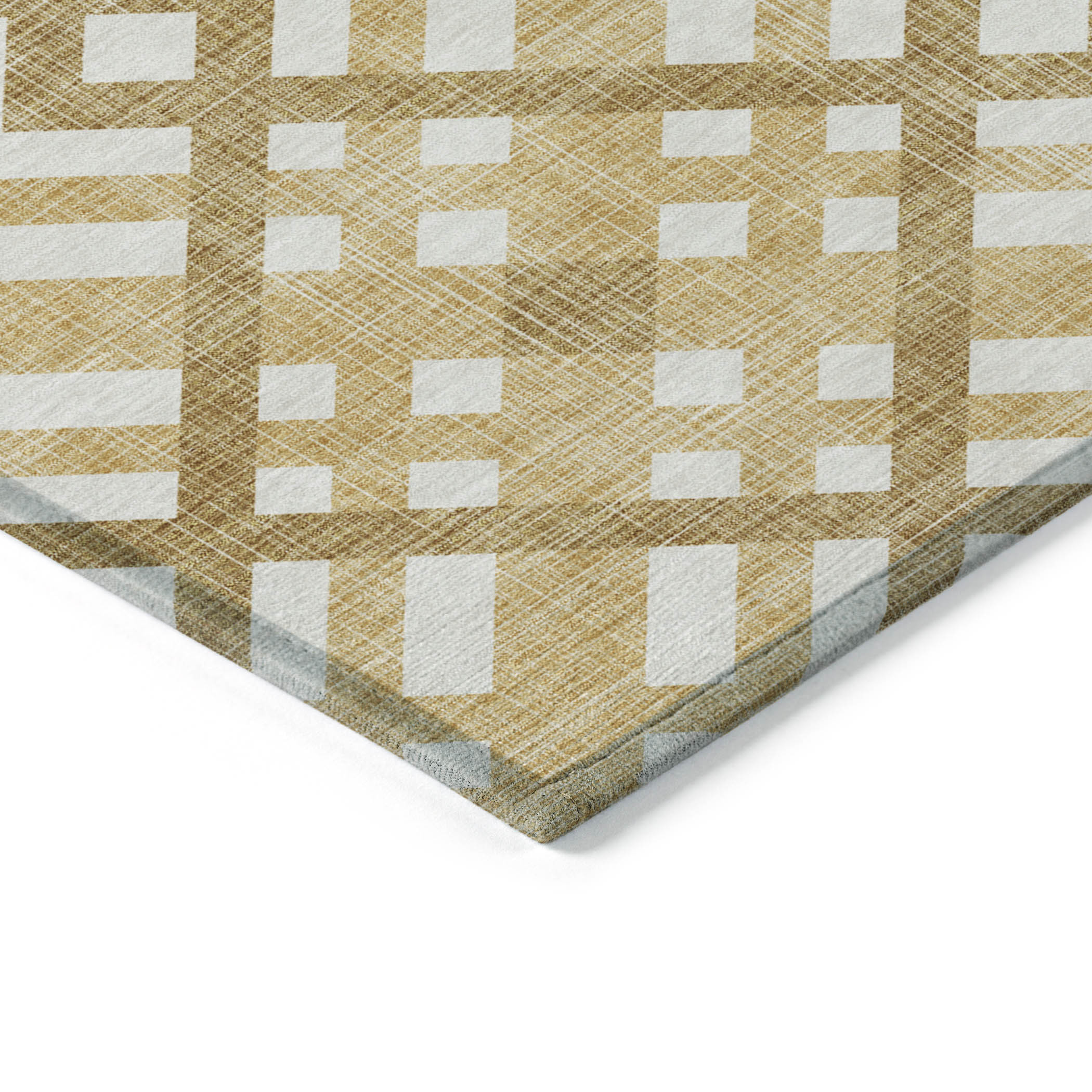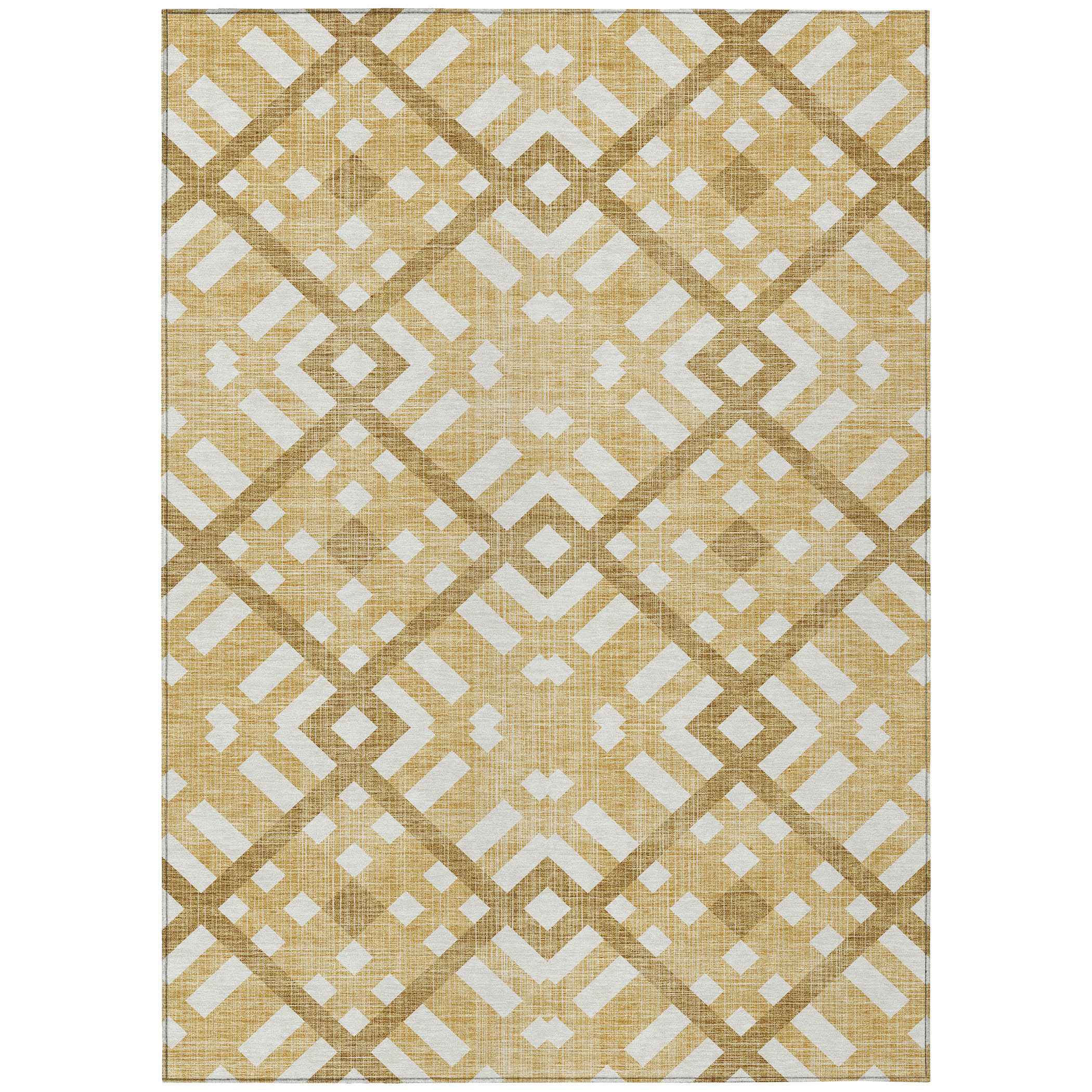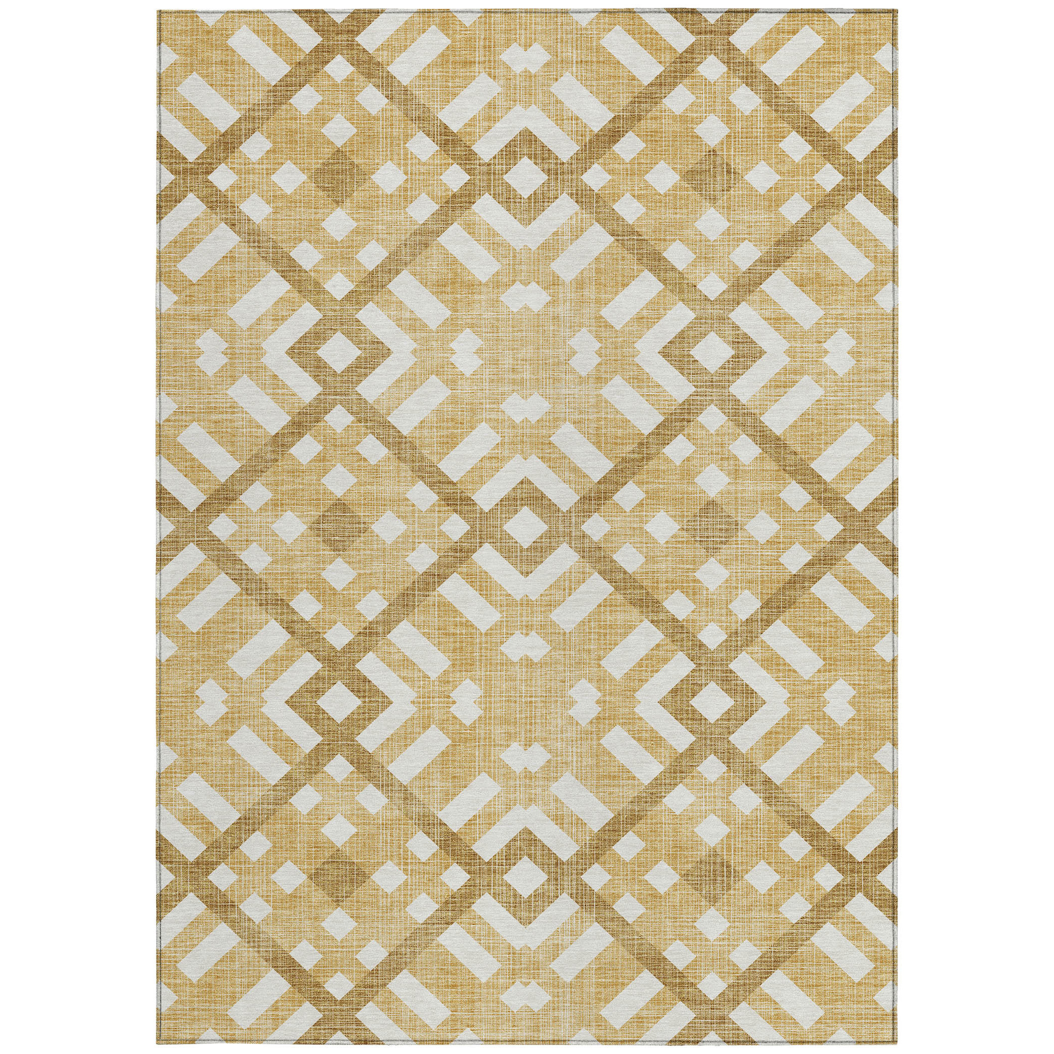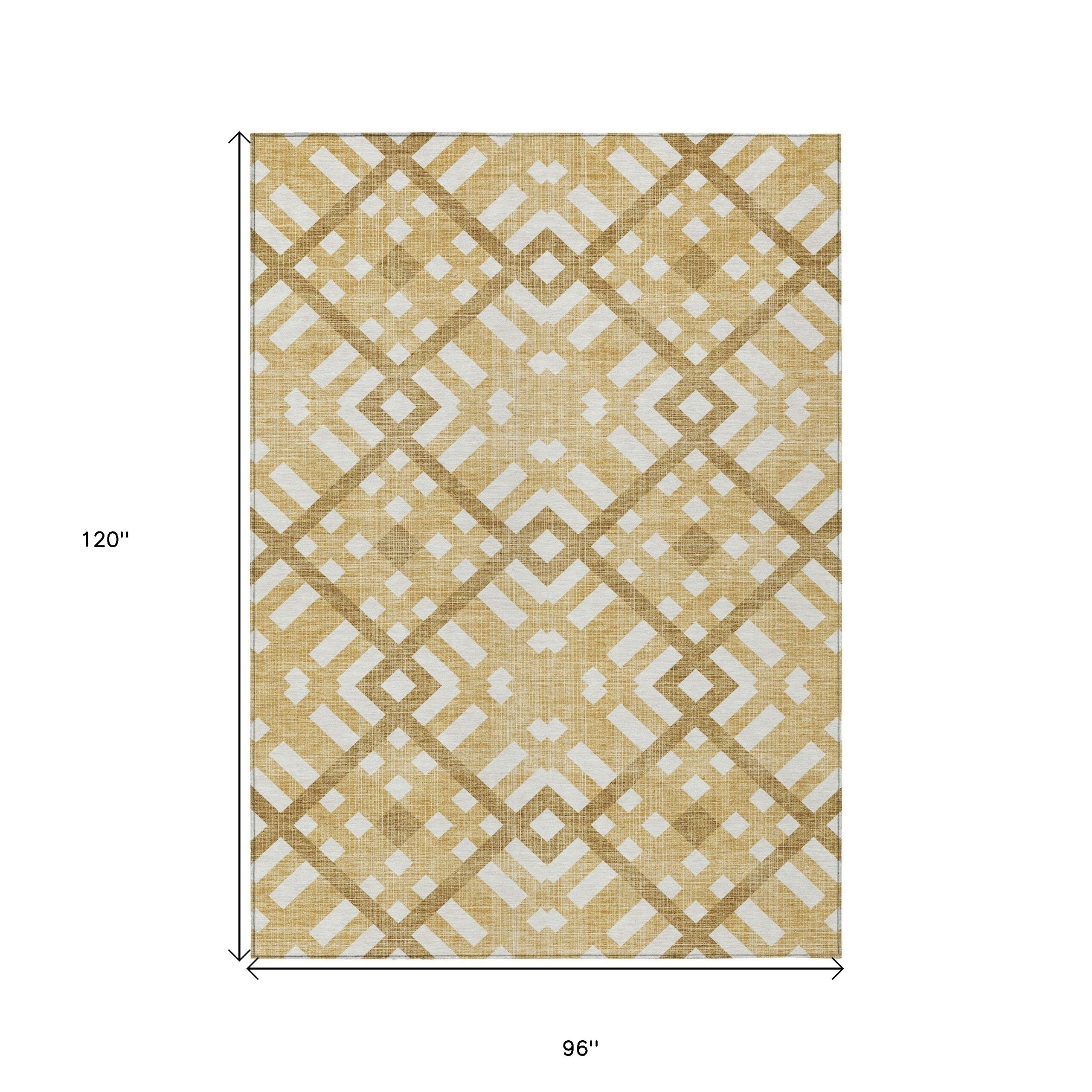 8′ X 10′ Gold Beige And Tan Geometric Washable Indoor Outdoor Area Rug