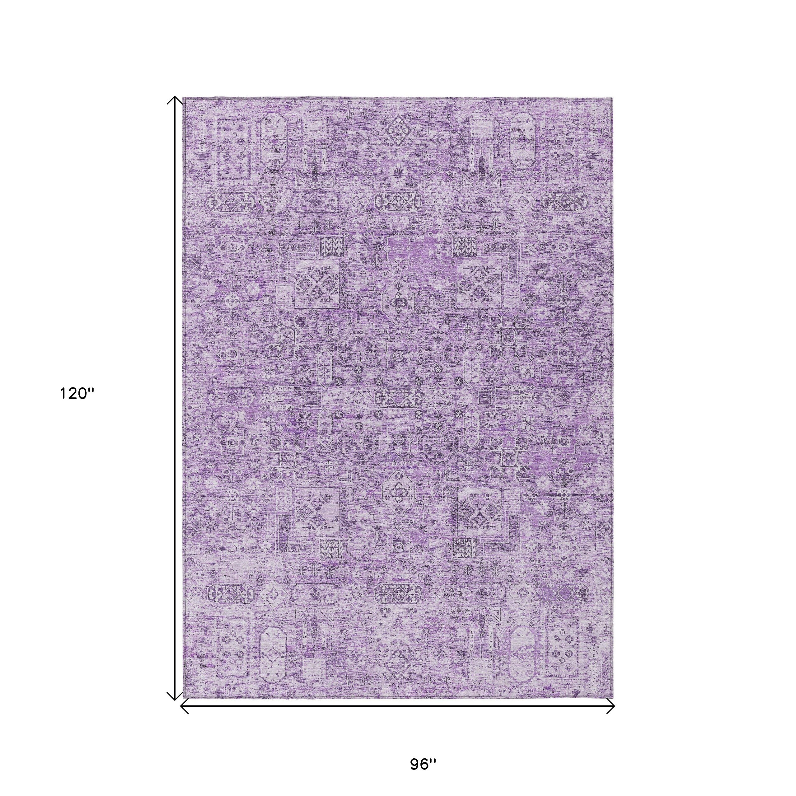 8′ X 10′ Lilac And Purple Floral Washable Indoor Outdoor Area Rug