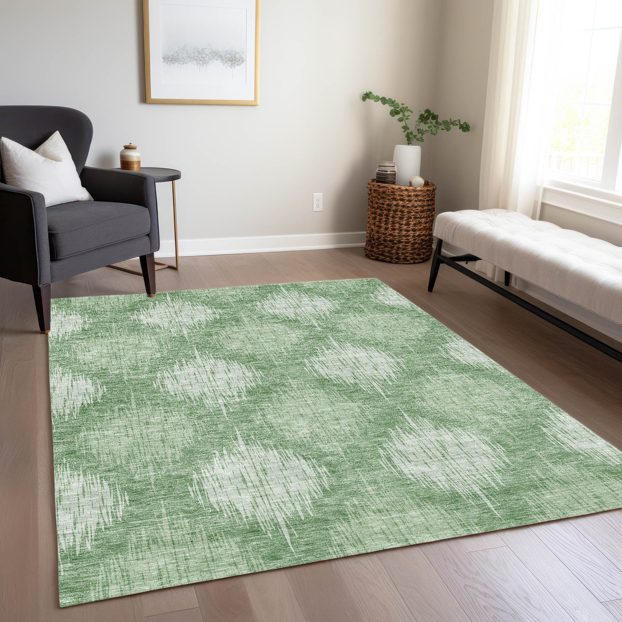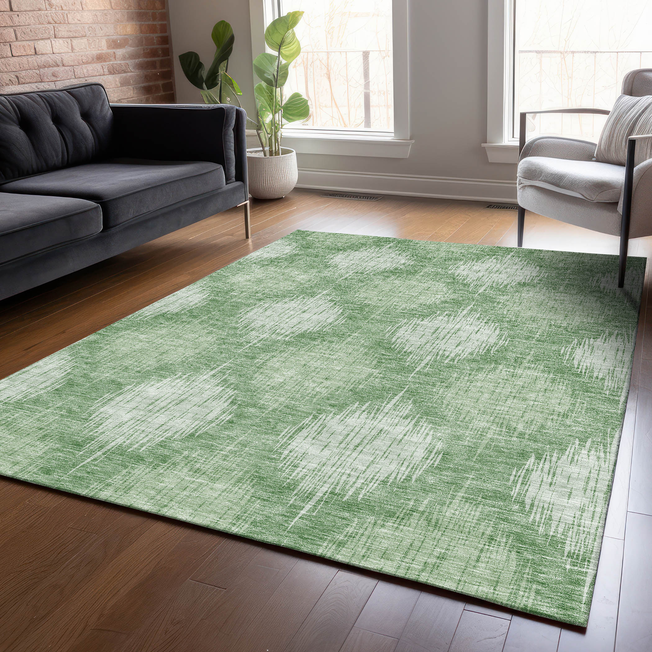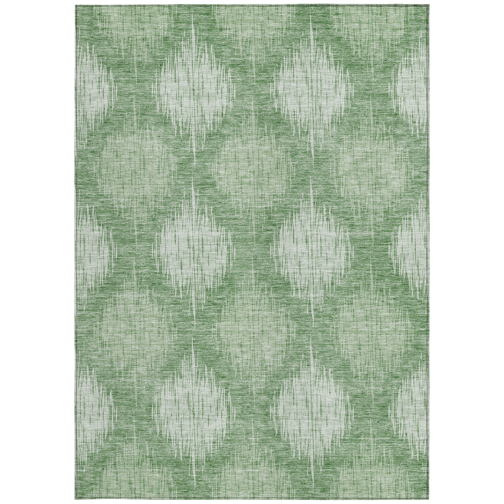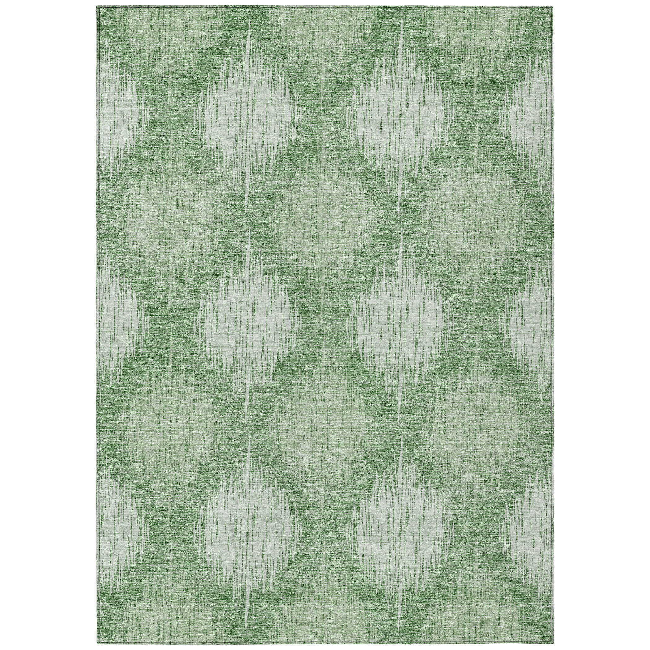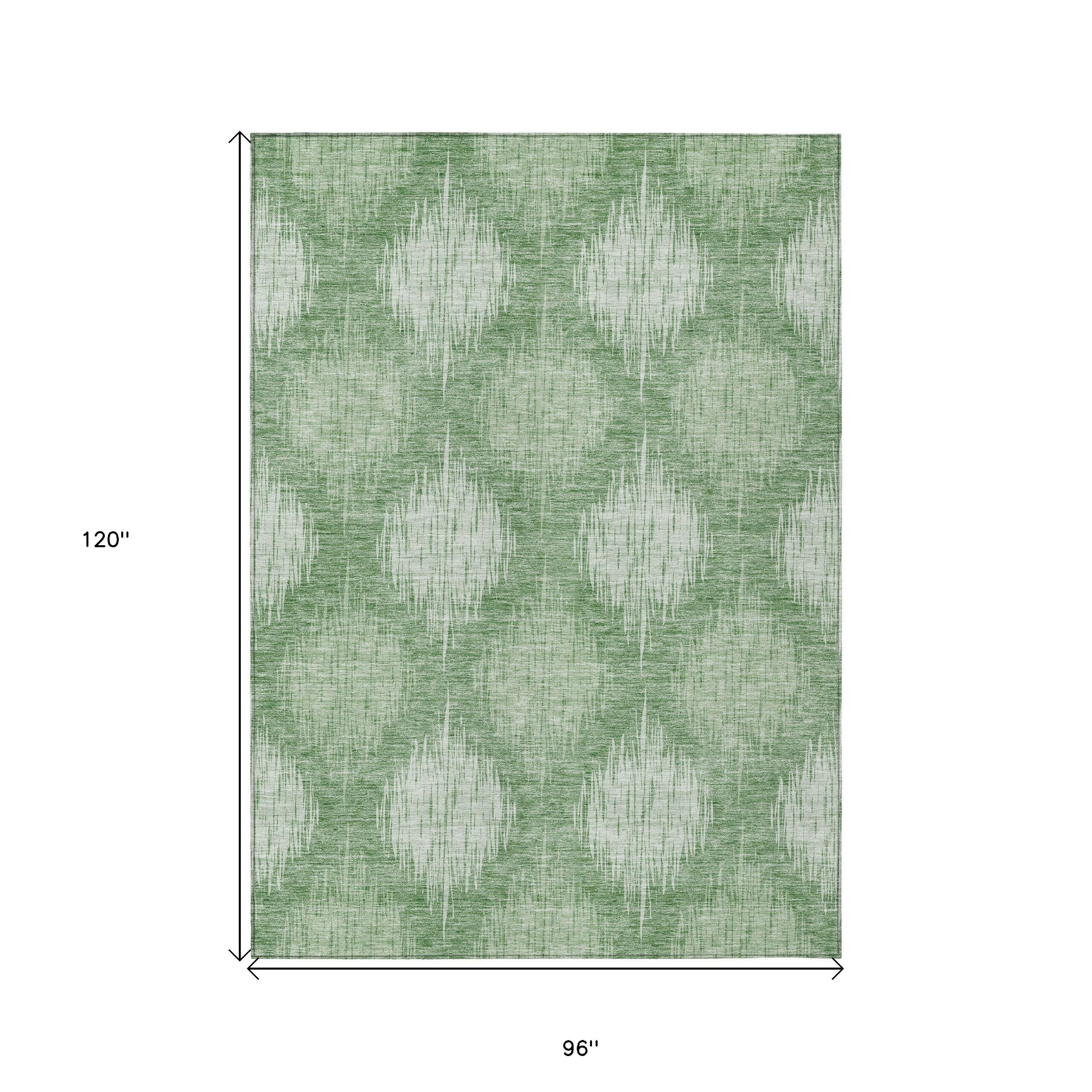 8′ X 10′ Mint Green And Fern Green Ikat Washable Indoor Outdoor Area Rug