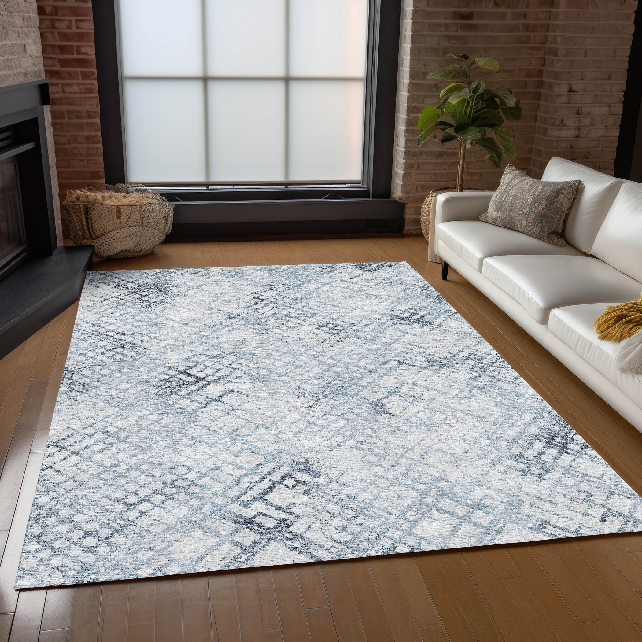 This 8-foot x 10-foot navy blue and sky blue geometric washable indoor outdoor area rug, is a great way to add warmth to a room. This rectangle shaped rug features a geometric design that will work well both indoors or out. A classic shape marries with good looking design for your living room, hall, bedroom, porch, patio, or poolside. Ideal for outdoor spaces or high traffic areas with kids and pets, this rug is made from heavy duty polyester that is stain resistant to help repel water, dirt, and stains. Makes a great way to dress up your patio, porch, or poolside, but also works well as a durable and easy to maintain option in the kitchen, family room, or mudroom. 96-inch h x 120-inch w x 0.19-inch d.