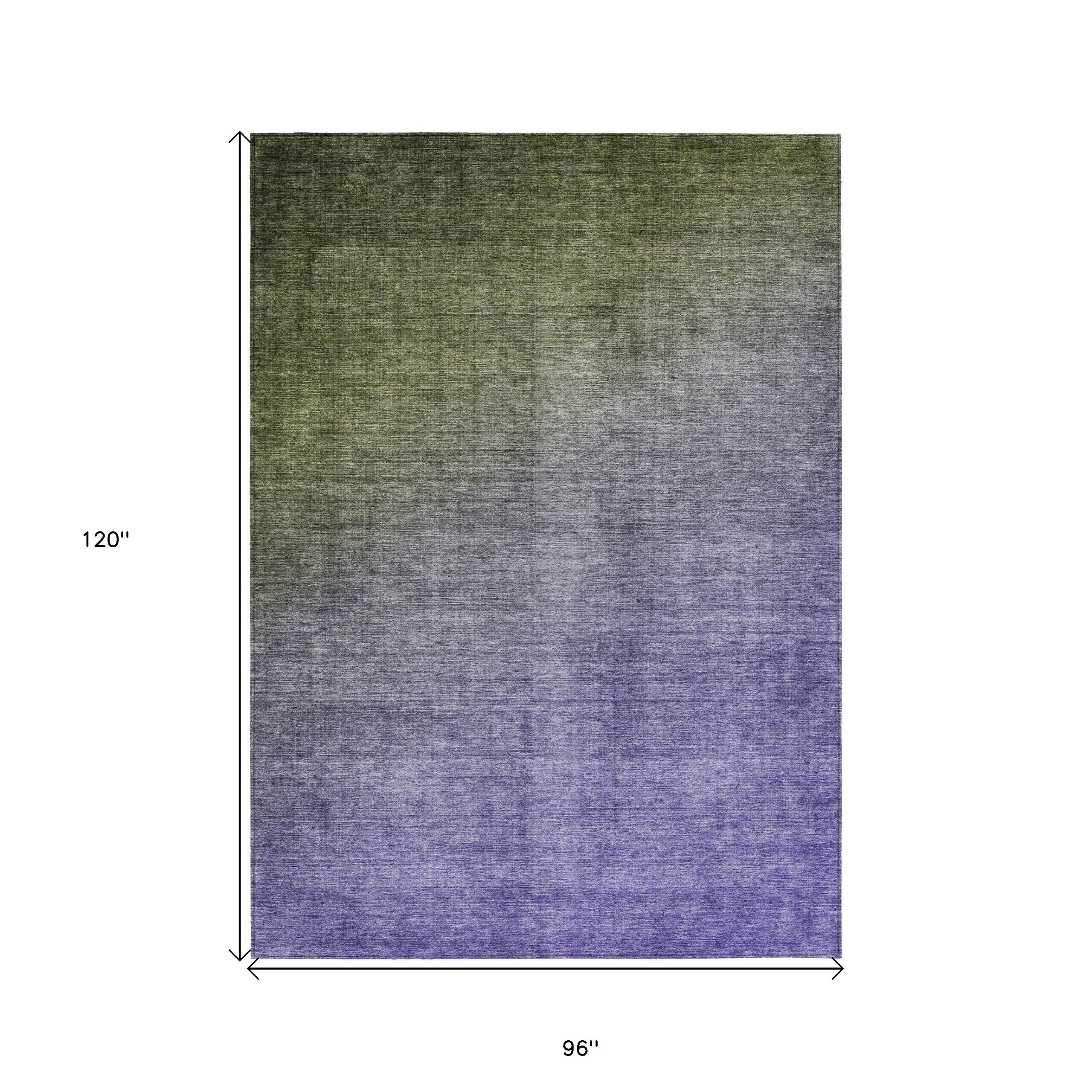 8′ X 10′ Olive Green and Purple Ombre Washable Non Skid Indoor Outdoor Area Rug