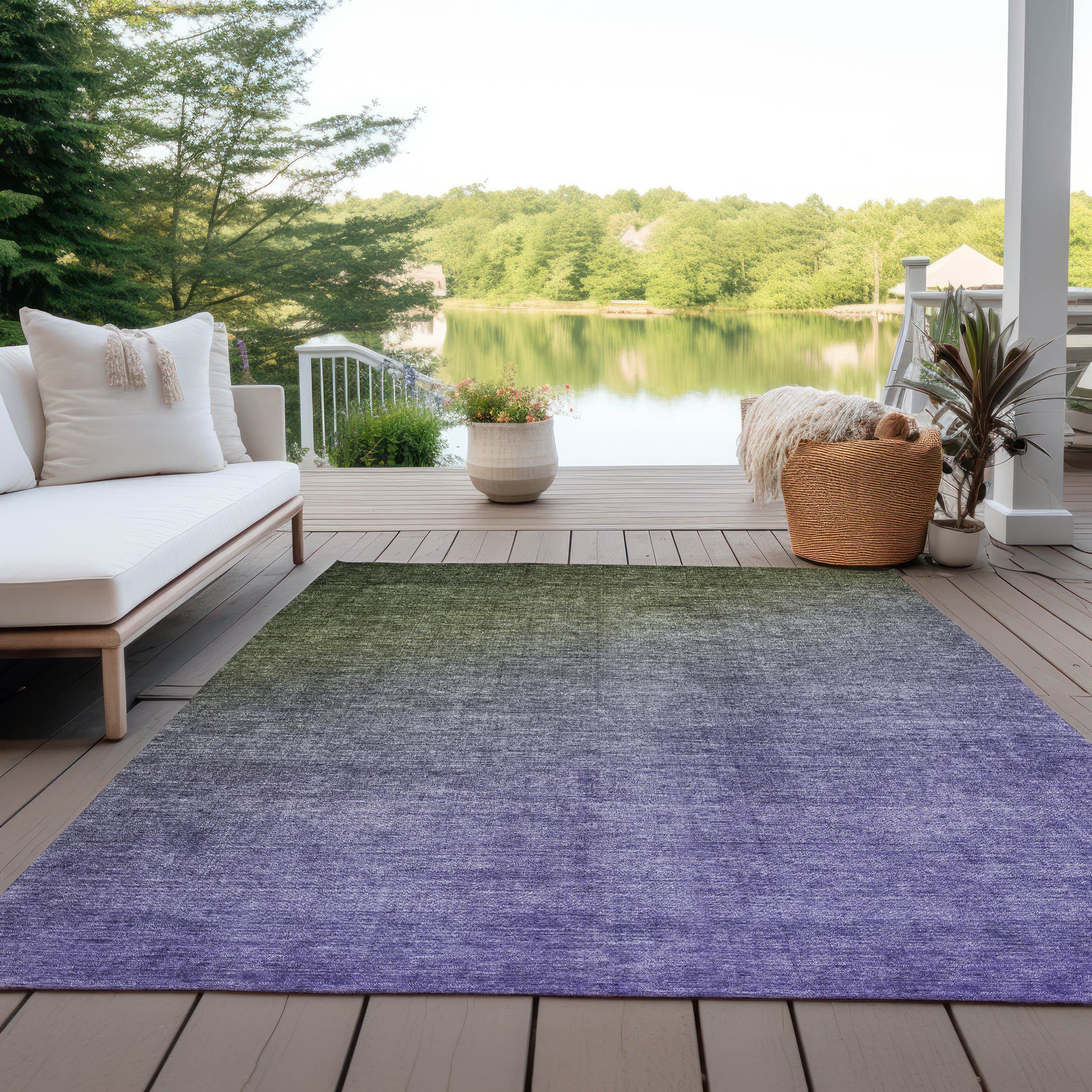 Set an inviting tone in your space with this 8-foot x 10-foot olive green and purple ombre washable stain resistant non skid indoor outdoor area rug. This rectangle shaped rug features a ombre design in olive green and purple to give it visual interest. A classic shape marries with good looking design for your space ideal for spaces with kids and pets, this rug is stain resistant to help repel stains and spilled liquids. Area rugs help to give warmth and sense of home to your space. 96-inch H x 120-inch W x 0.19-inch D