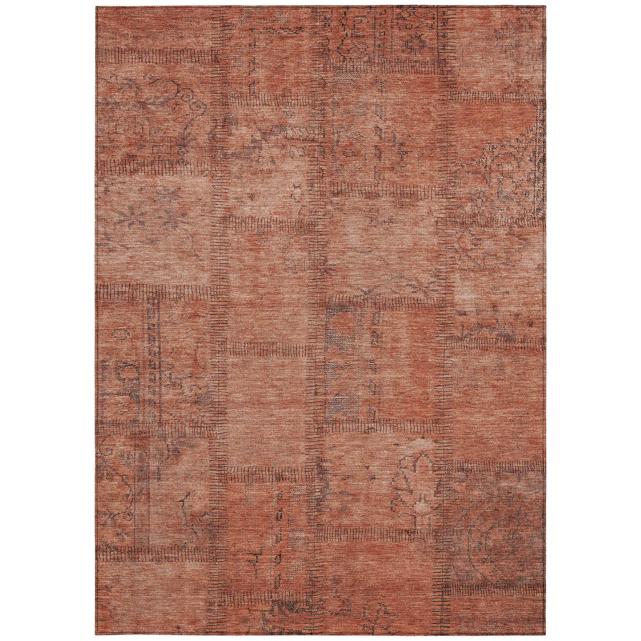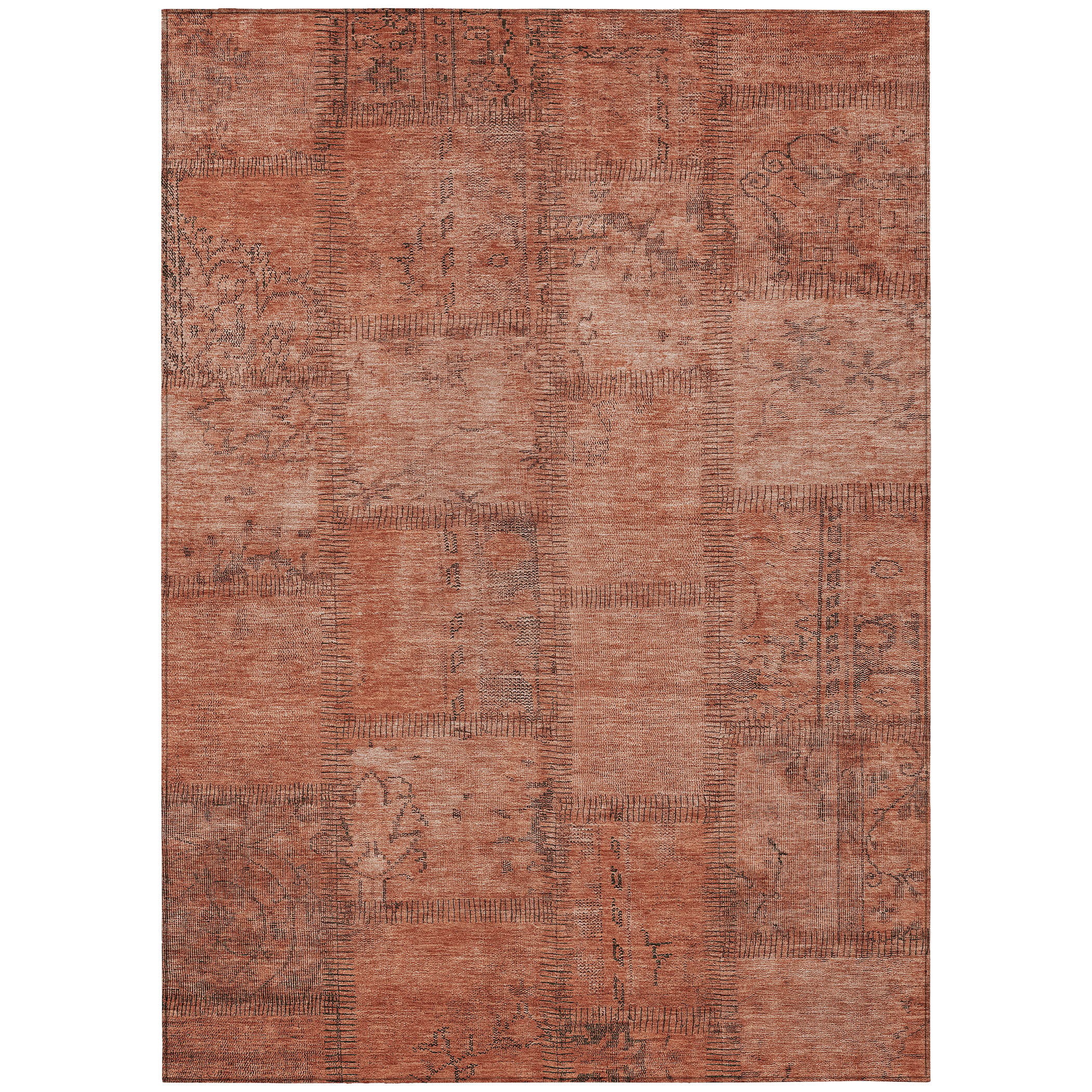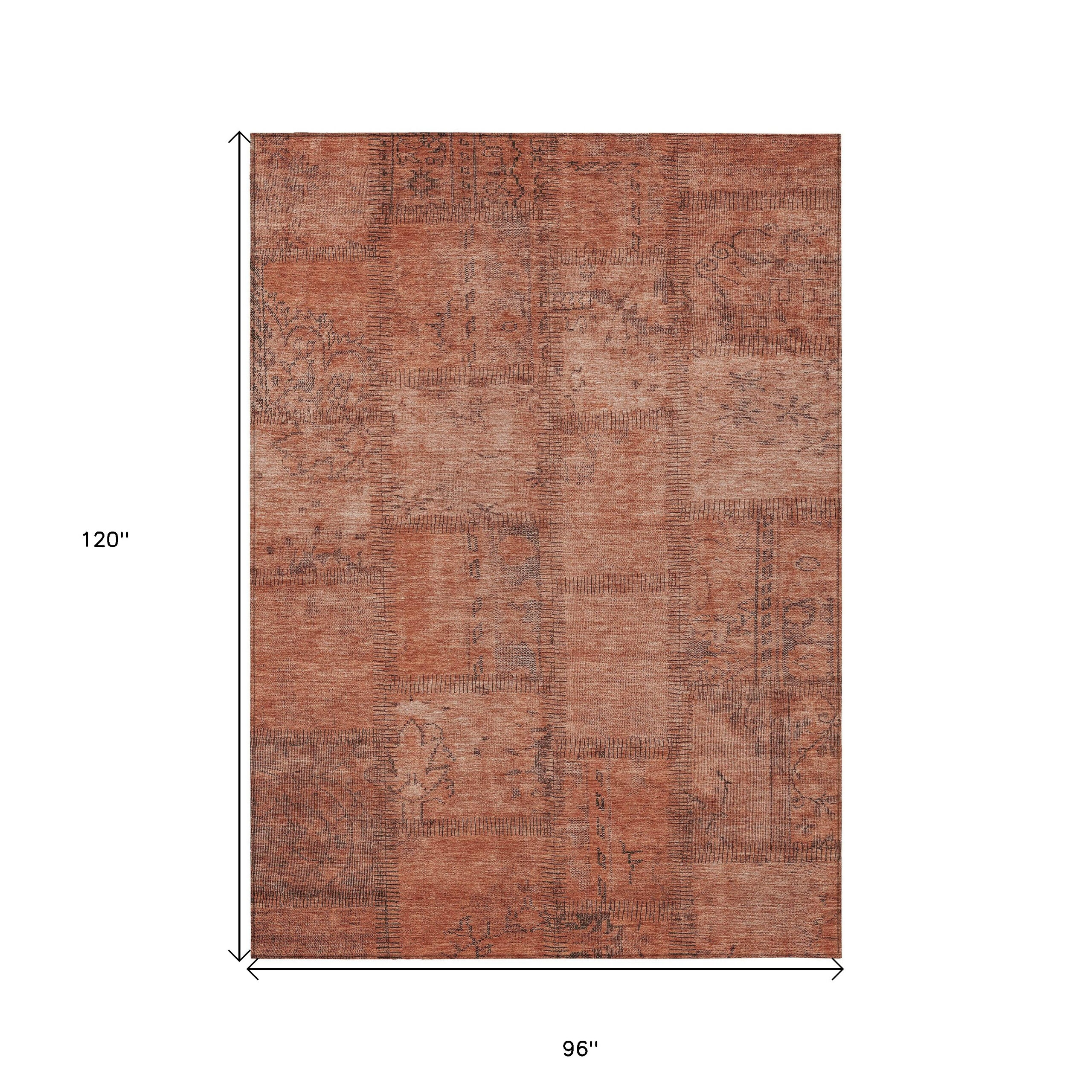 8′ X 10′ Salmon Copper And Gray Patchwork Washable Indoor Outdoor Area Rug