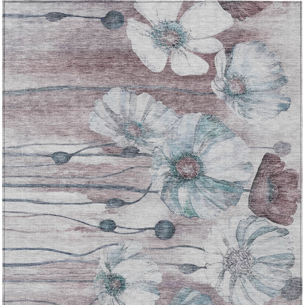 8′ X 10′ Teal Blue Aqua And Ivory Floral Washable Indoor Outdoor Area Rug