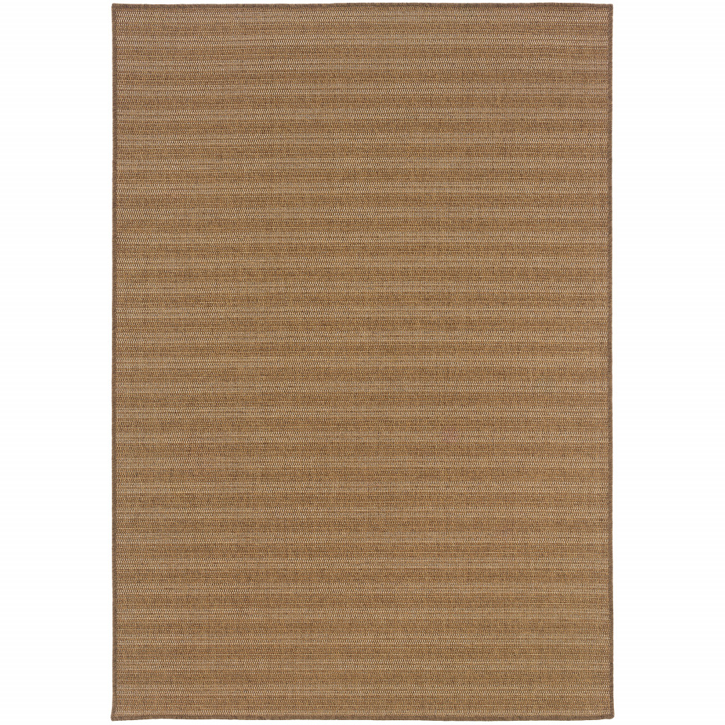 8′ X 11′ Tan Striped Stain Resistant Indoor Outdoor Area Rug