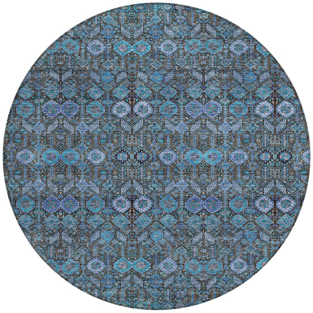 8′ X 8′ Teal Round Tribal Washable Indoor Outdoor Area Rug