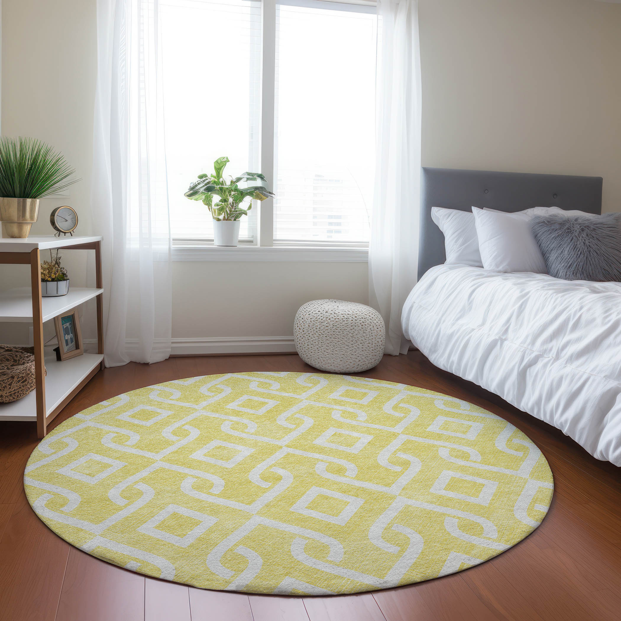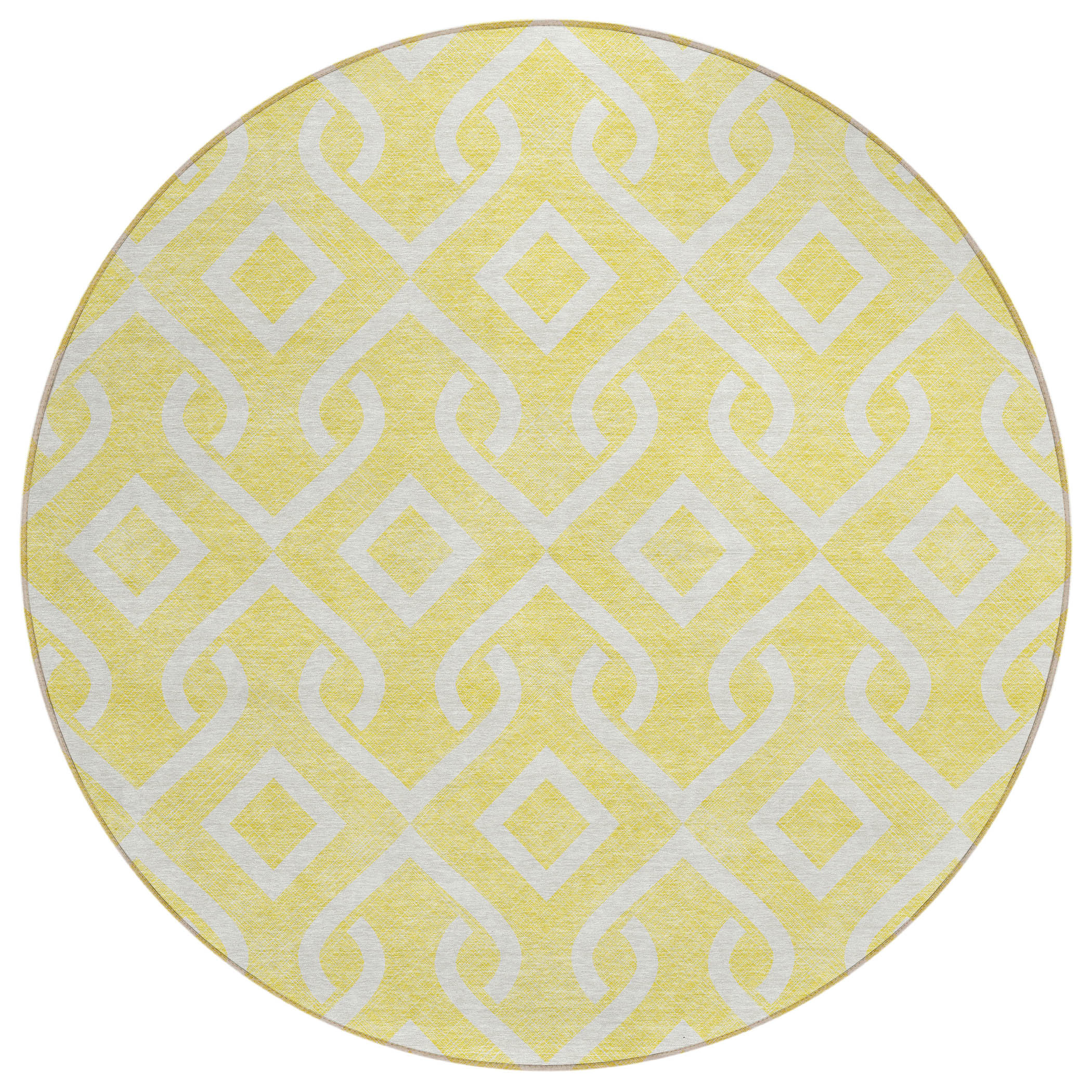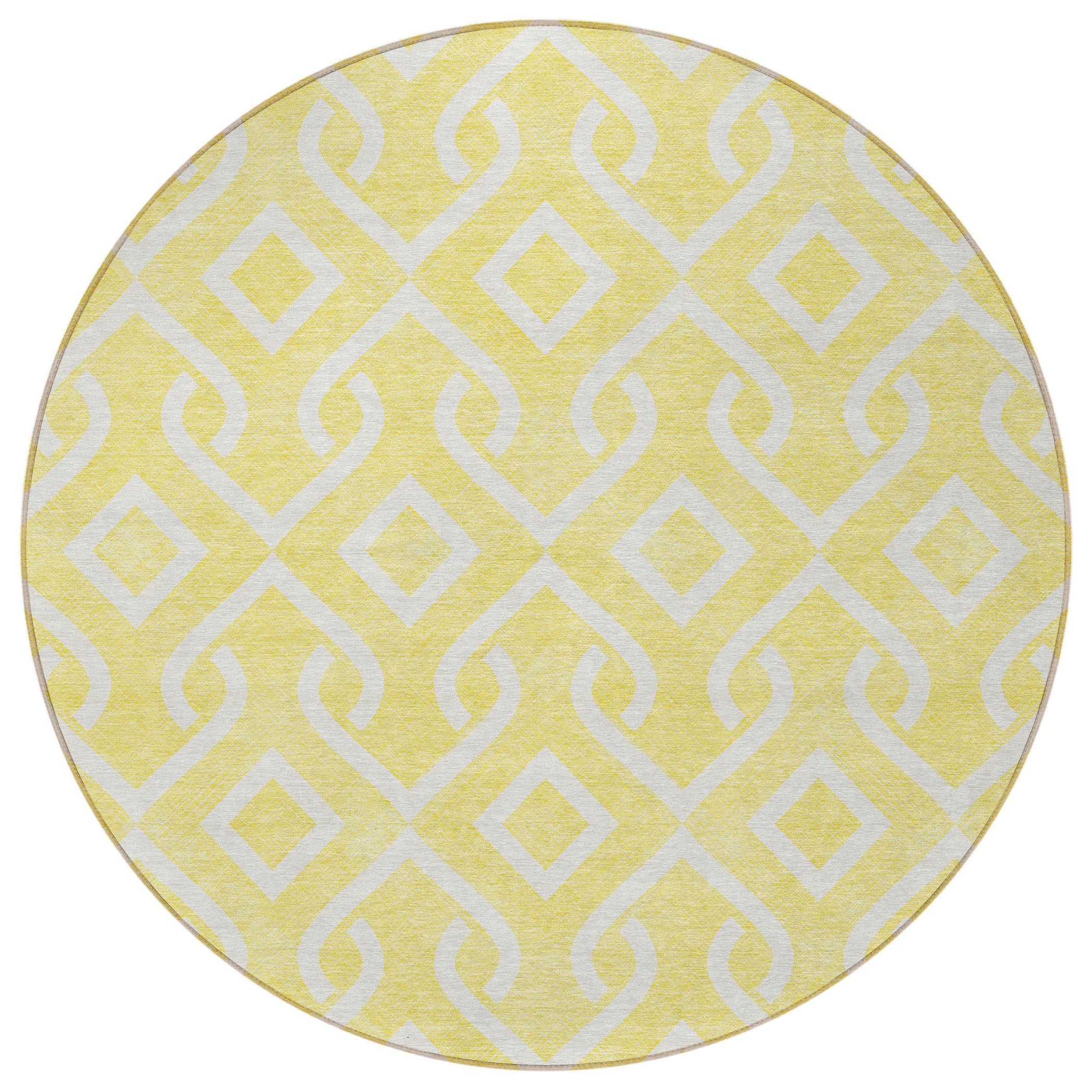 8′ Yellow And Ivory Round Geometric Washable Indoor Outdoor Area Rug