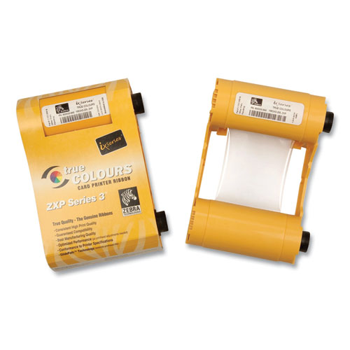 Zebra Technologies® True Colors card printer ribbons produce high-quality IDs and extend the life of your printers and cards. Vibrant colors, “true-to-life” flesh tones, and sharp barcodes and text. Patented print ribbon technology for minimal printhead buildup and durable cards. Zebra Technologies® True Colors I Series and C Series monochrome ribbons use thermal printer ribbon technology to deliver the most vibrant barcodes and text. The ZXP 3 Load-N-Go cartridges makes it easy to load and replace the ribbon. They use intelligent media technology for automatic ribbon detection and optimized imaging. Optimize color card printer performance with a multi-panel thermal transfer ribbon offering the latest in dye-sublimation technology, resulting in crisp, long-lasting results.