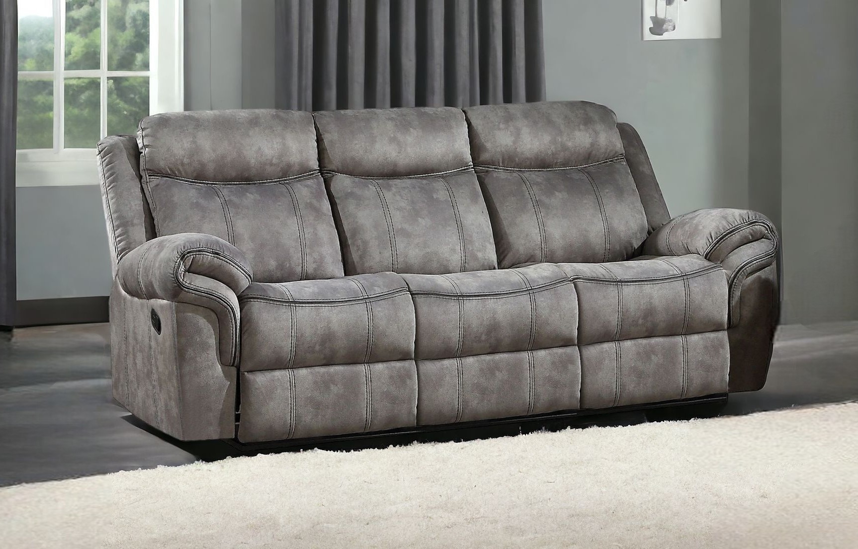 Transform your home’s interior with this luxurious 87-inch gray and black velvet reclining usb sofa. With a warm and rich look to it, this solid color reclining is upholstered in velvet that is designed to be super soft to the touch, sturdy and resilient. Solid colors give you lots of decorative options and are easy to work into your decor scheme. Sinuous springs construction gives this piece strong support and makes it comfortable to sit even for long periods of time. Pillow top arms offer a comfy place to rest. The tufted stitching pattern adds visual interest and fine designer detailing. A great showpiece for your room, this sofa is a must have. 40-inch H x 87-inch W x 39-inch D