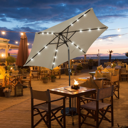 9 Feet Solar LED Lighted Patio Market Umbrella Tilt Adjustment Crank Lift-Tan