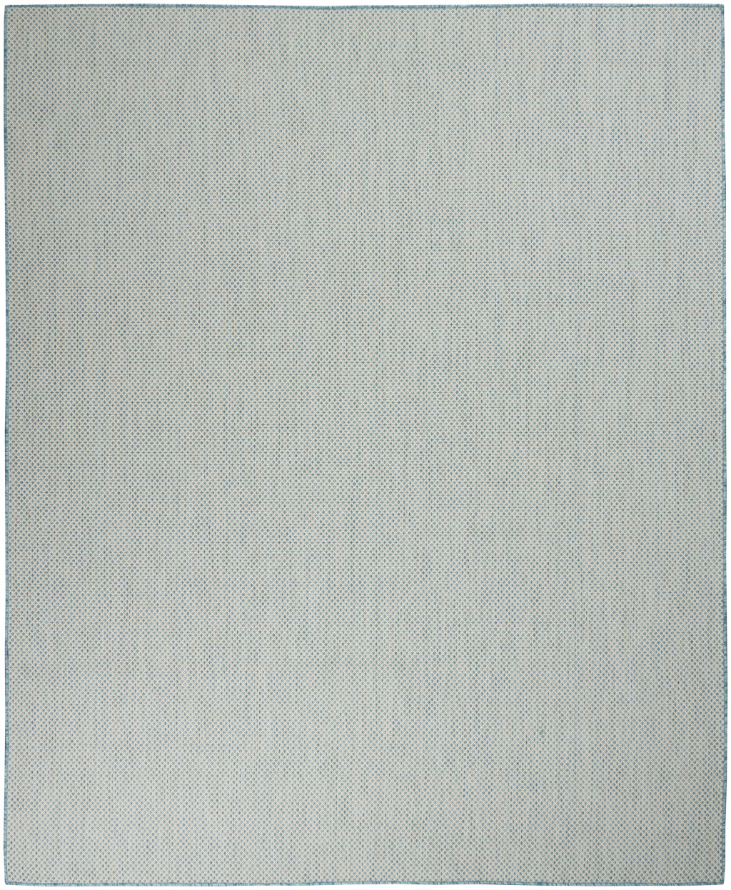 9′ X 12′ Aqua and Ivory Indoor Outdoor Area Rug