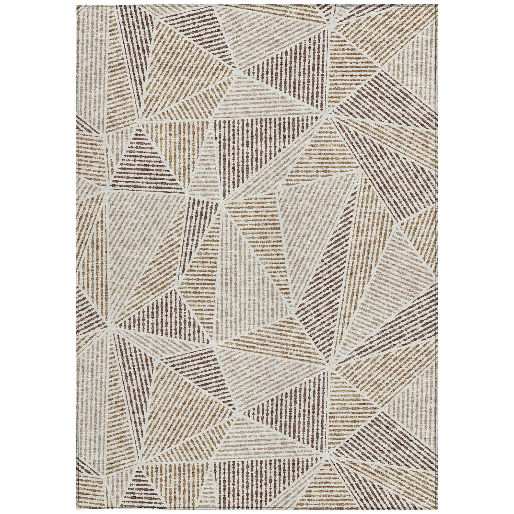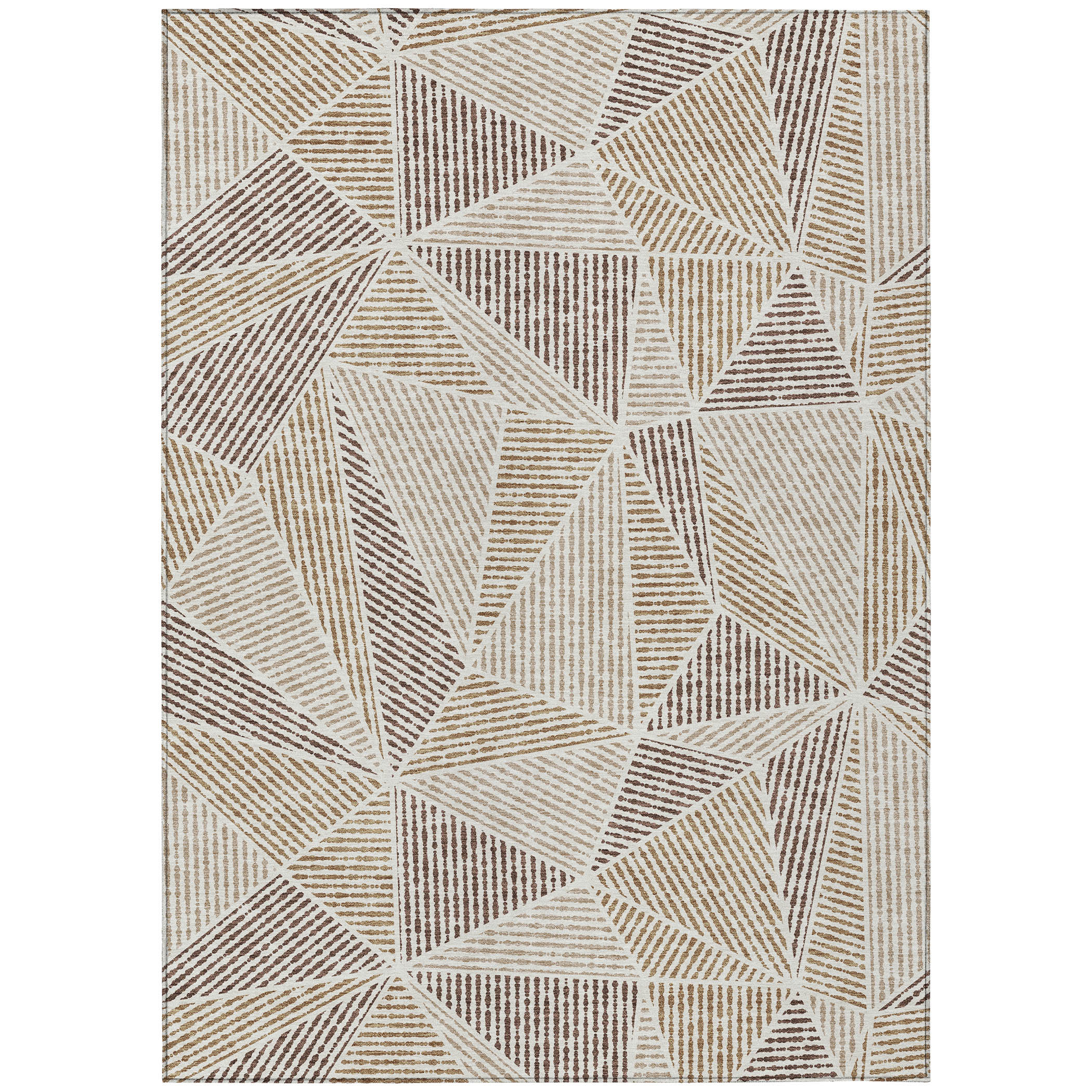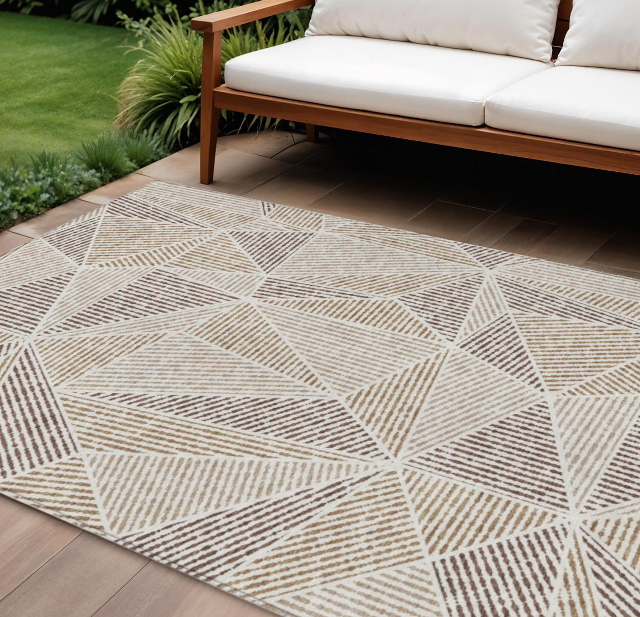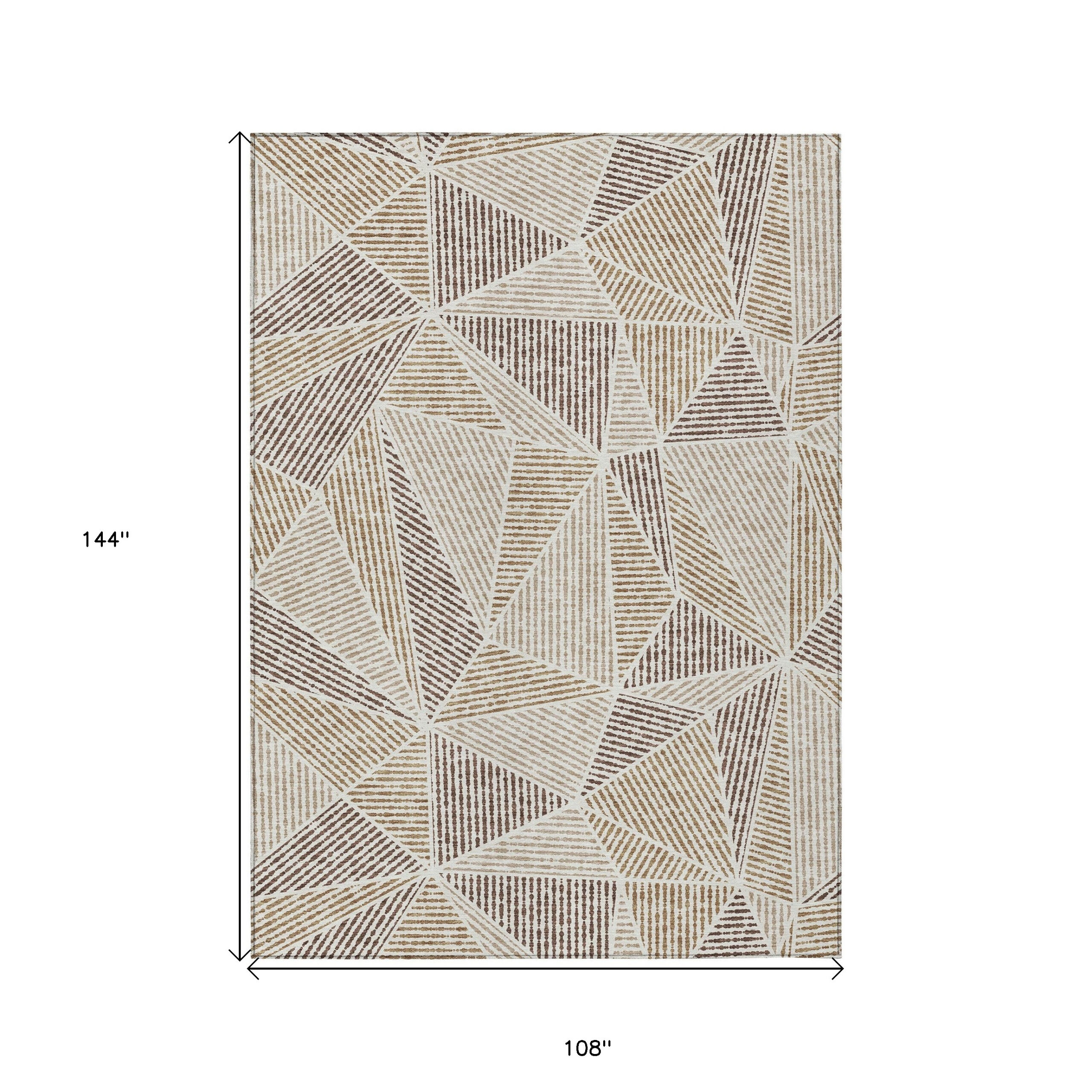 9′ X 12′ Brown Taupe And Beige Geometric Washable Indoor Outdoor Area Rug