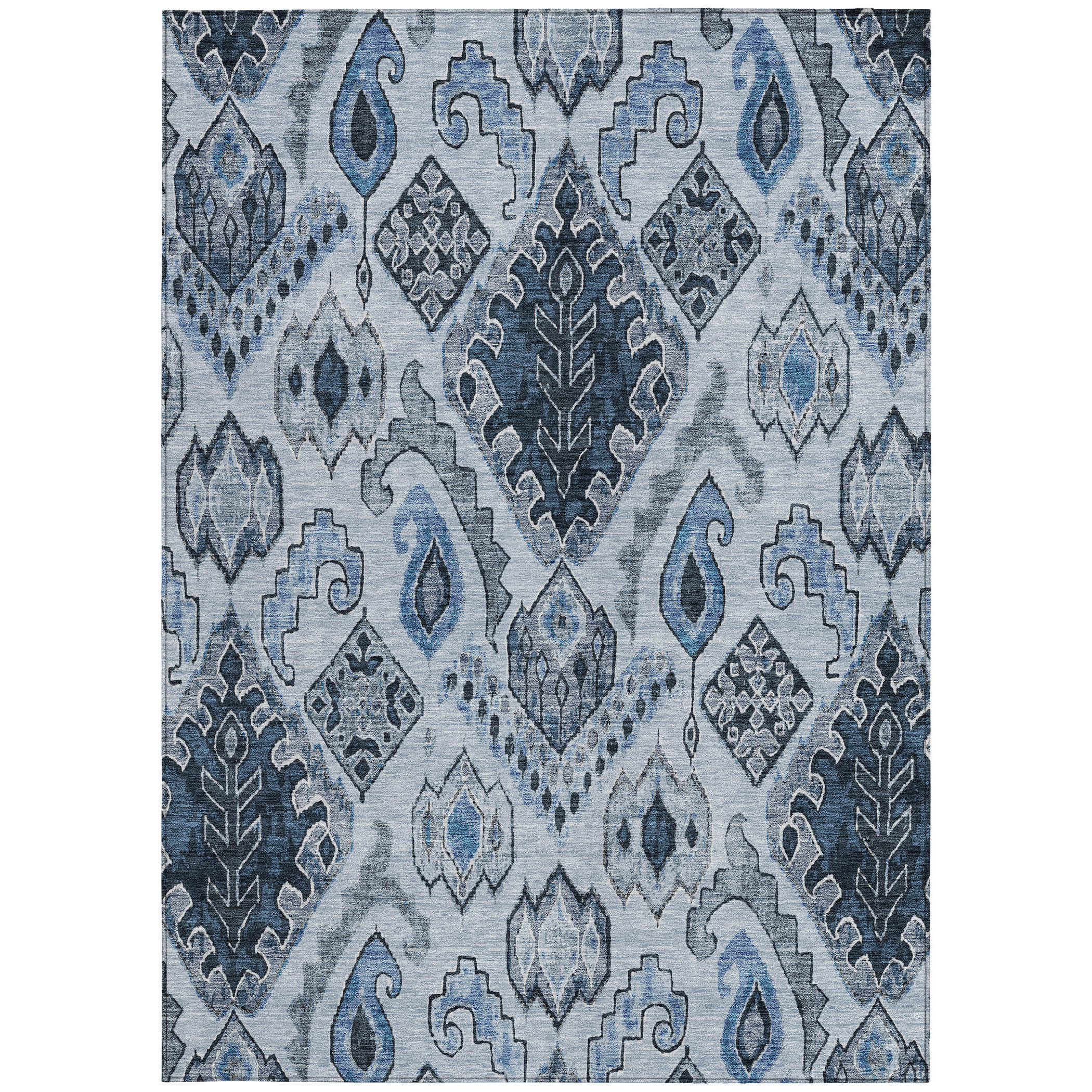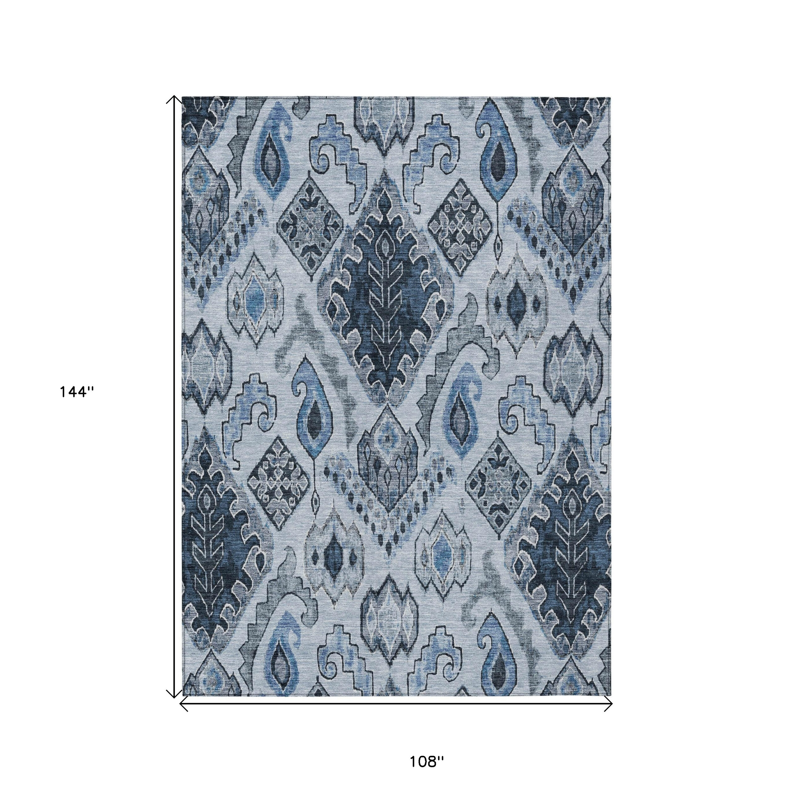 9′ X 12′ Denim Blue And Sky Blue Moroccan Washable Indoor Outdoor Area Rug