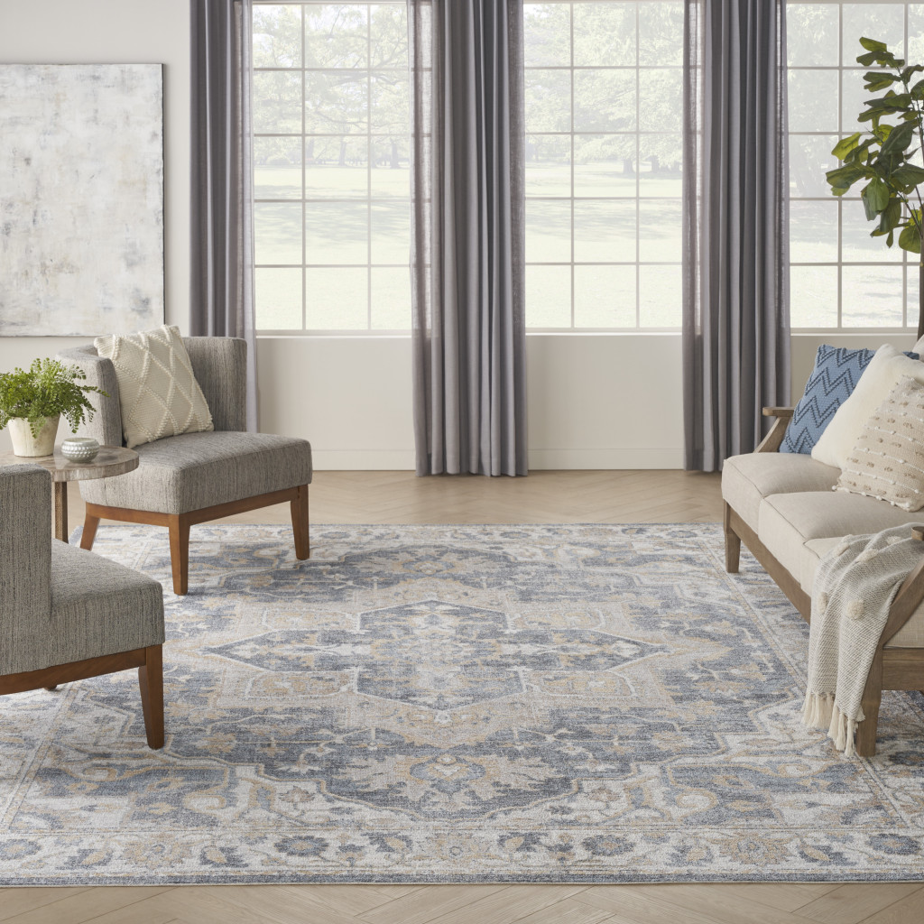 This 9′ x 12′ gray oriental power loom area rug, is a great way to add warmth to a room. This rectangle shaped rug features a oriental design in gray to give it visual interest. A classic shape marries with good looking design for your space The coloring of this rug adds a delightfully neutral tone to your home and will easily match with most any decor. This superior Turkish rug represents the highest quality and is built to last. Area Rugs help to give warmth and sense of home to your space. .25″ H x 108.00″ W x 144.00″ D