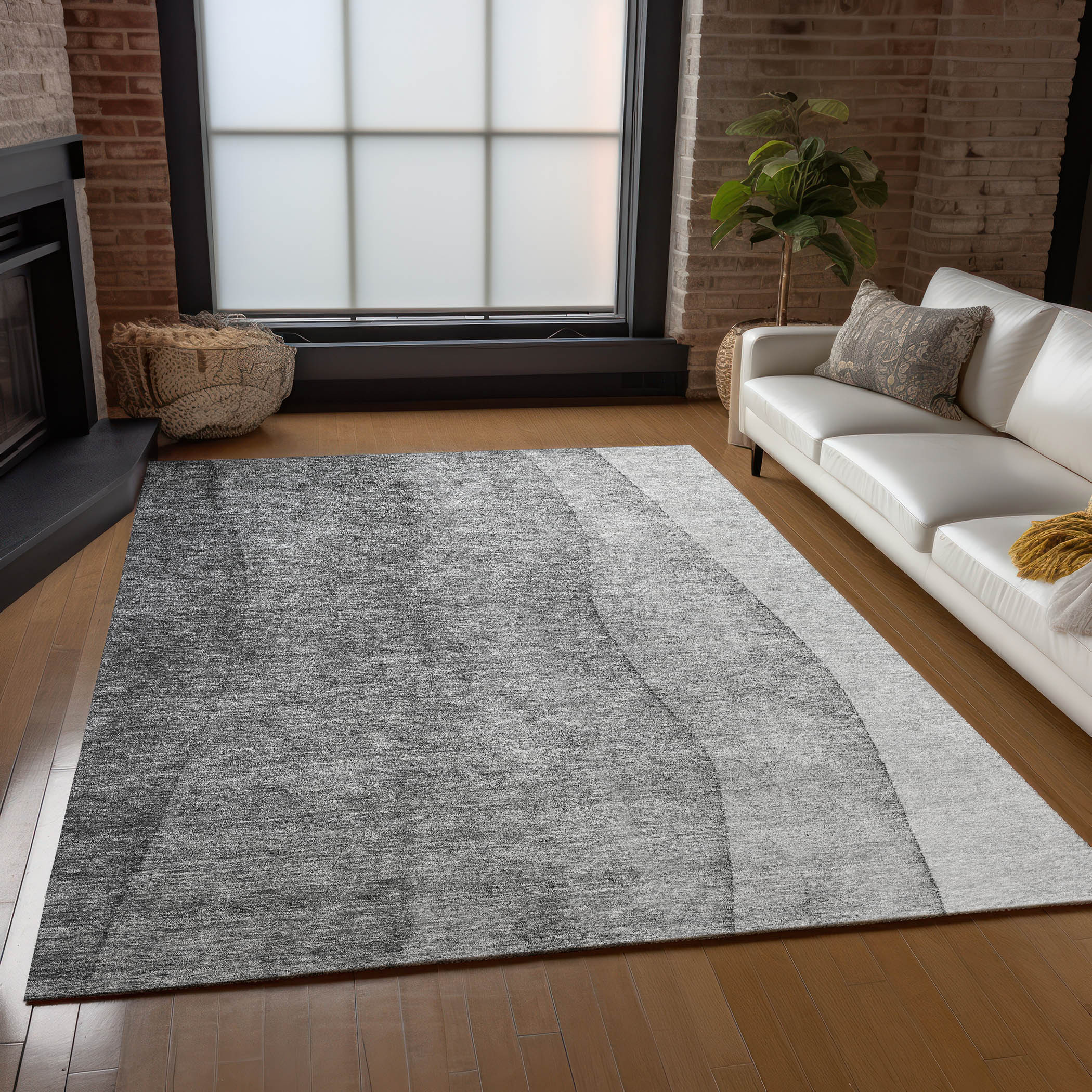 This 9-foot x 12-foot gray silver and charcoal ombre washable indoor outdoor area rug, is a great way to add warmth to a room. This rectangle shaped rug features a ombre design that will work well both indoors or out. A classic shape marries with good looking design for your living room, hall, bedroom, porch, patio, or poolside. Ideal for outdoor spaces or high traffic areas with kids and pets, this rug is made from heavy duty polyester that is stain resistant to help repel water, dirt, and stains. Versatile in use, durable, and easy to maintain, this rug is an ideal solution to add a decorative and inviting touch to your indoor or outdoor space. 108-inch h x 144-inch w x 0.19-inch d.