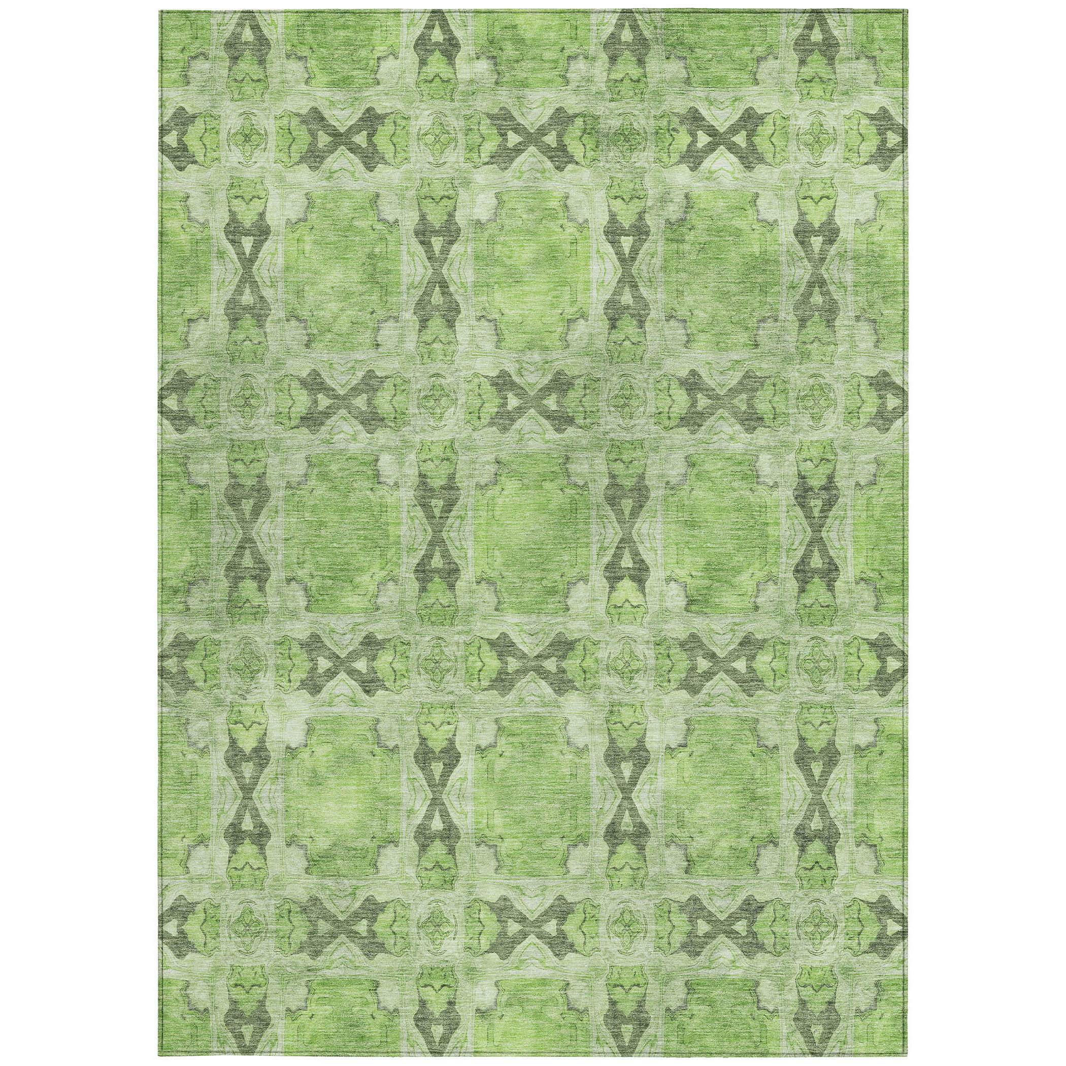 This 9-foot x 12-foot green floral medallion washable stain resistant non skid indoor outdoor area rug, is a great way to add warmth to a room. This rectangle shaped rug features a floral medallion design in green to give it visual interest. A classic shape marries with good looking design for your space ideal for spaces with kids and pets, this rug is stain resistant to help repel stains and spilled liquids. Area rugs help to give warmth and sense of home to your space. 108-inch H x 144-inch W x 0.19-inch D