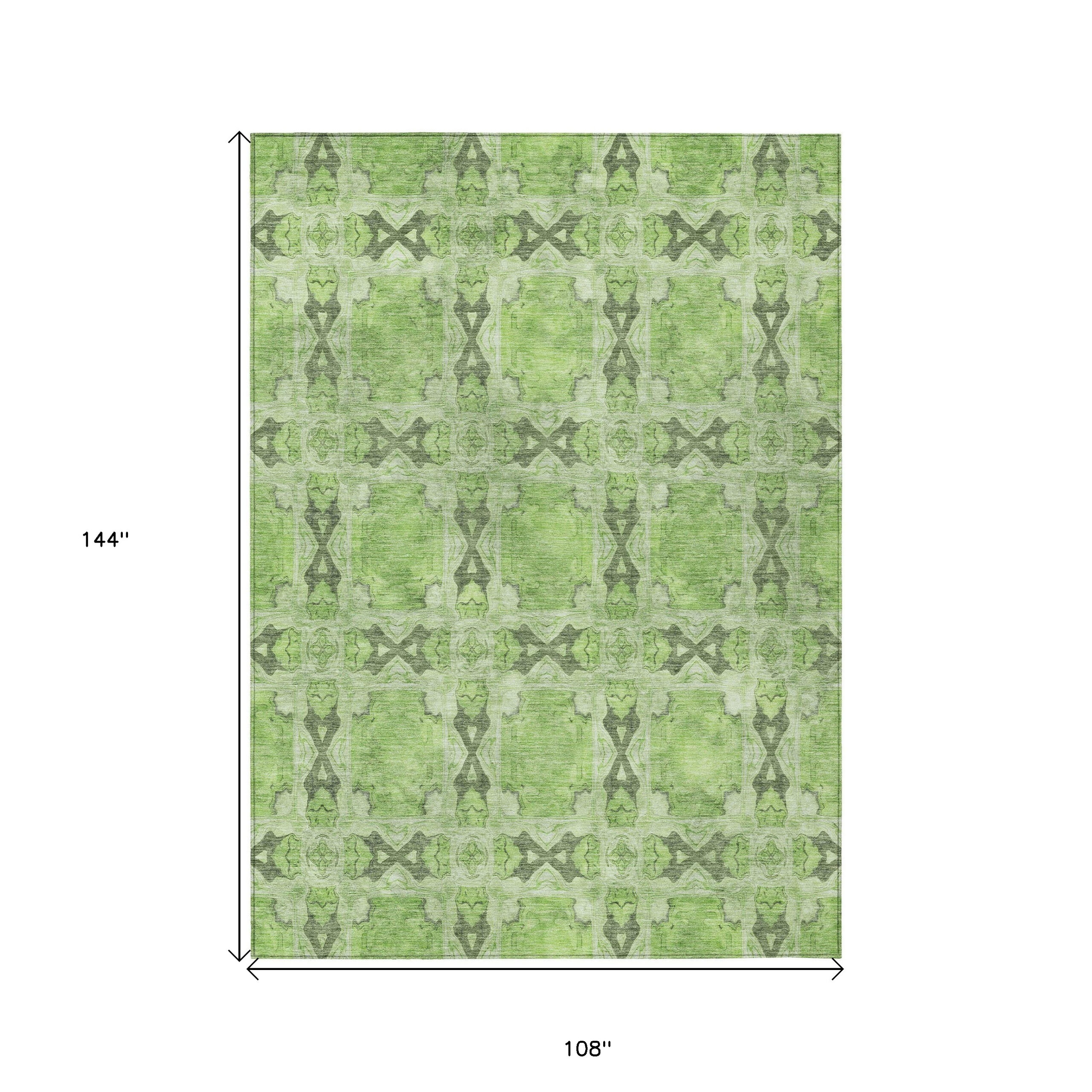 9′ X 12′ Green Floral Medallion Washable Non Skid Indoor Outdoor Area Rug