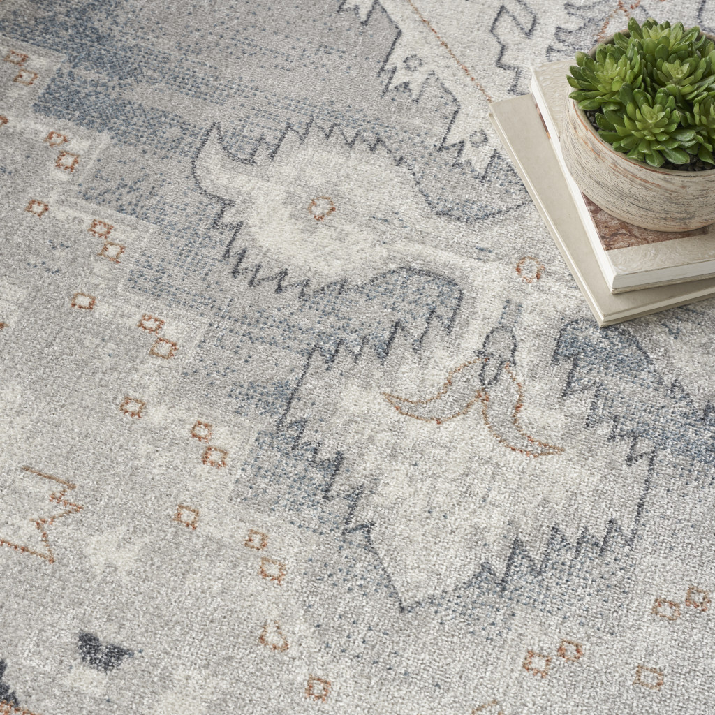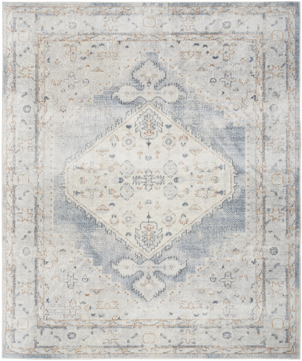 9′ X 12′ Light Blue Oriental Power Loom Distressed Area Rug