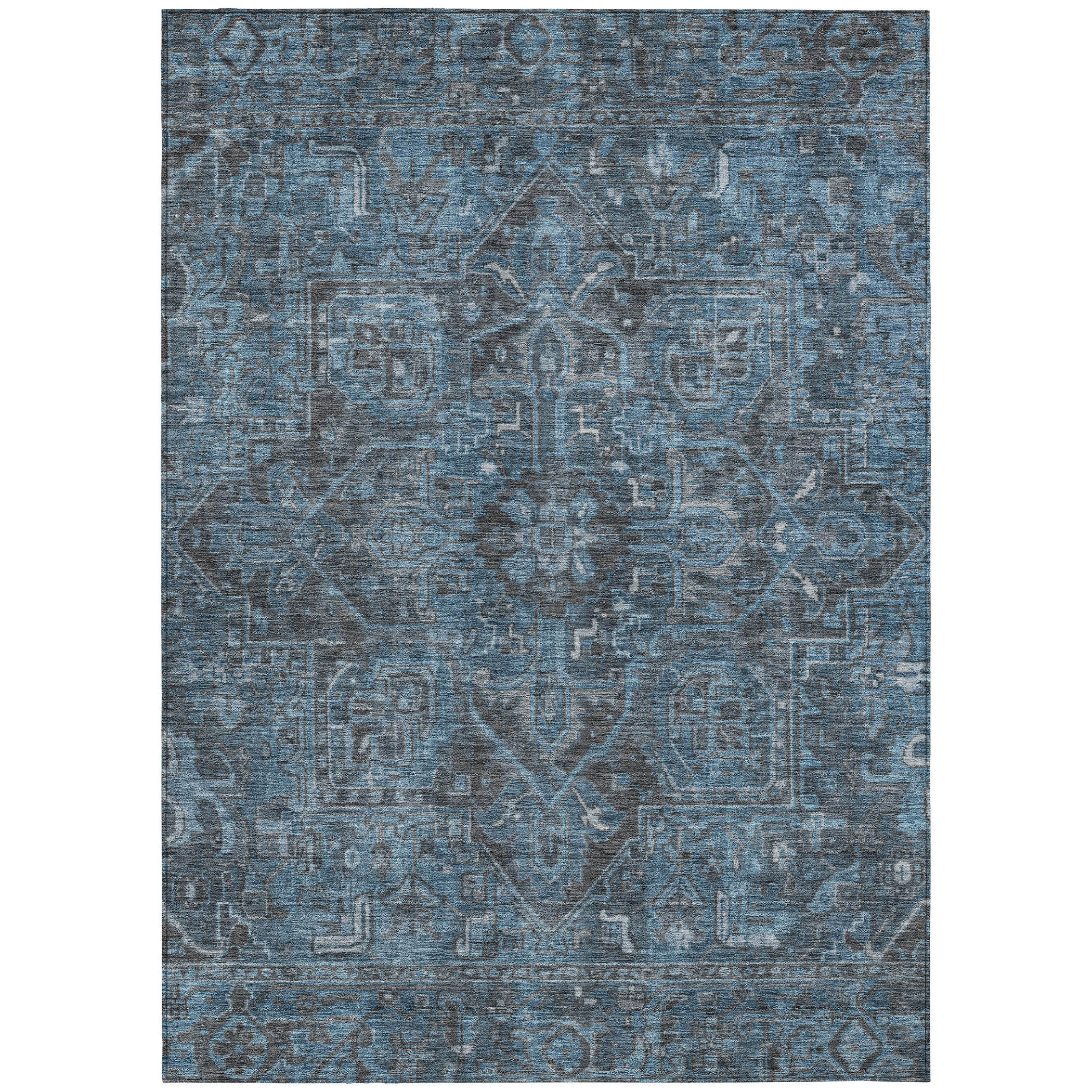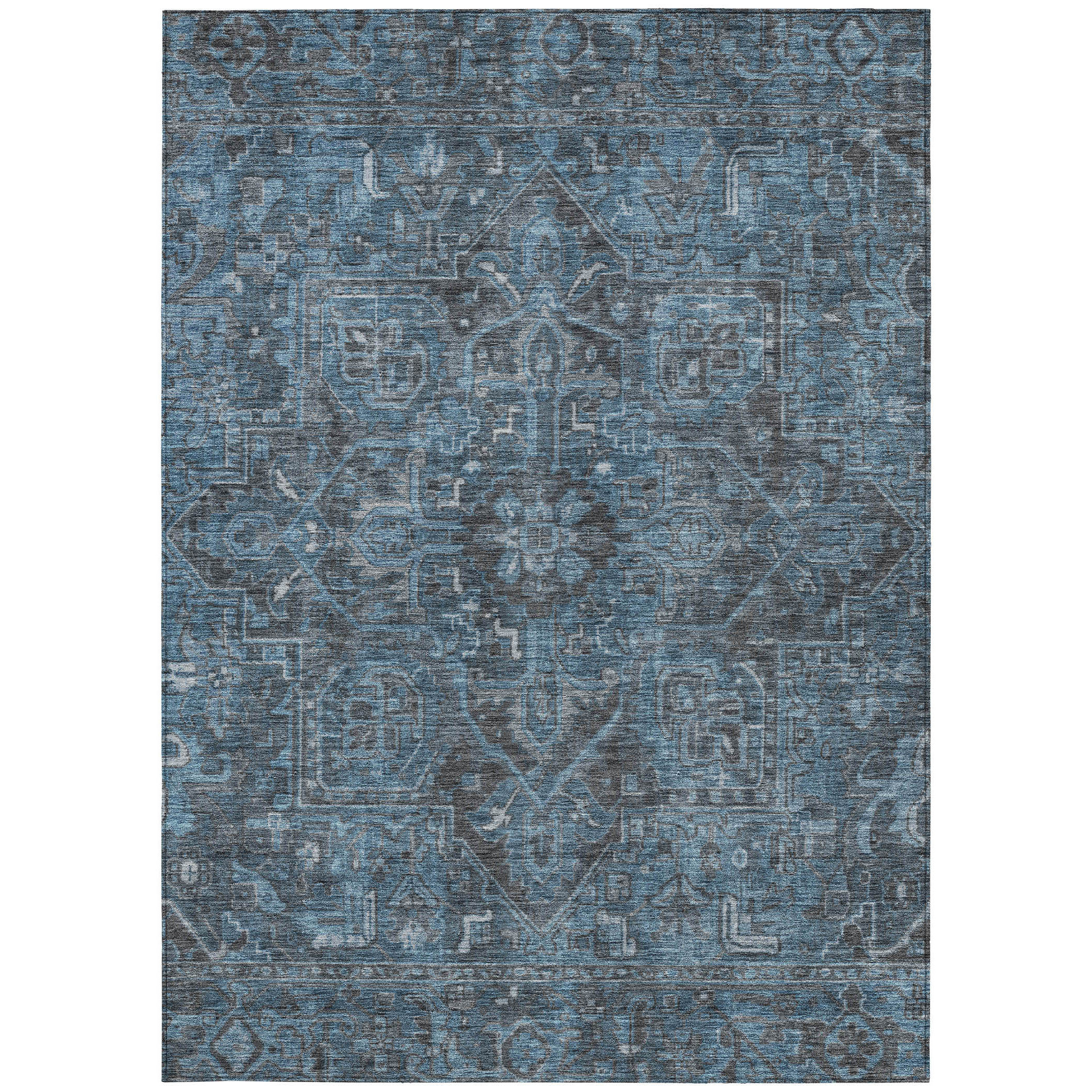 Set an inviting tone in your space with this 9-foot x 12-foot navy and black oriental washable stain resistant non skid indoor outdoor area rug. This rectangle shaped rug features a oriental design in navy and black to give it visual interest. A classic shape marries with good looking design for your space ideal for spaces with kids and pets, this rug is stain resistant to help repel stains and spilled liquids. Place this area rug against a hardwood or tile floor and it will enliven your living space with style and sophistication. 108-inch H x 144-inch W x 0.19-inch D