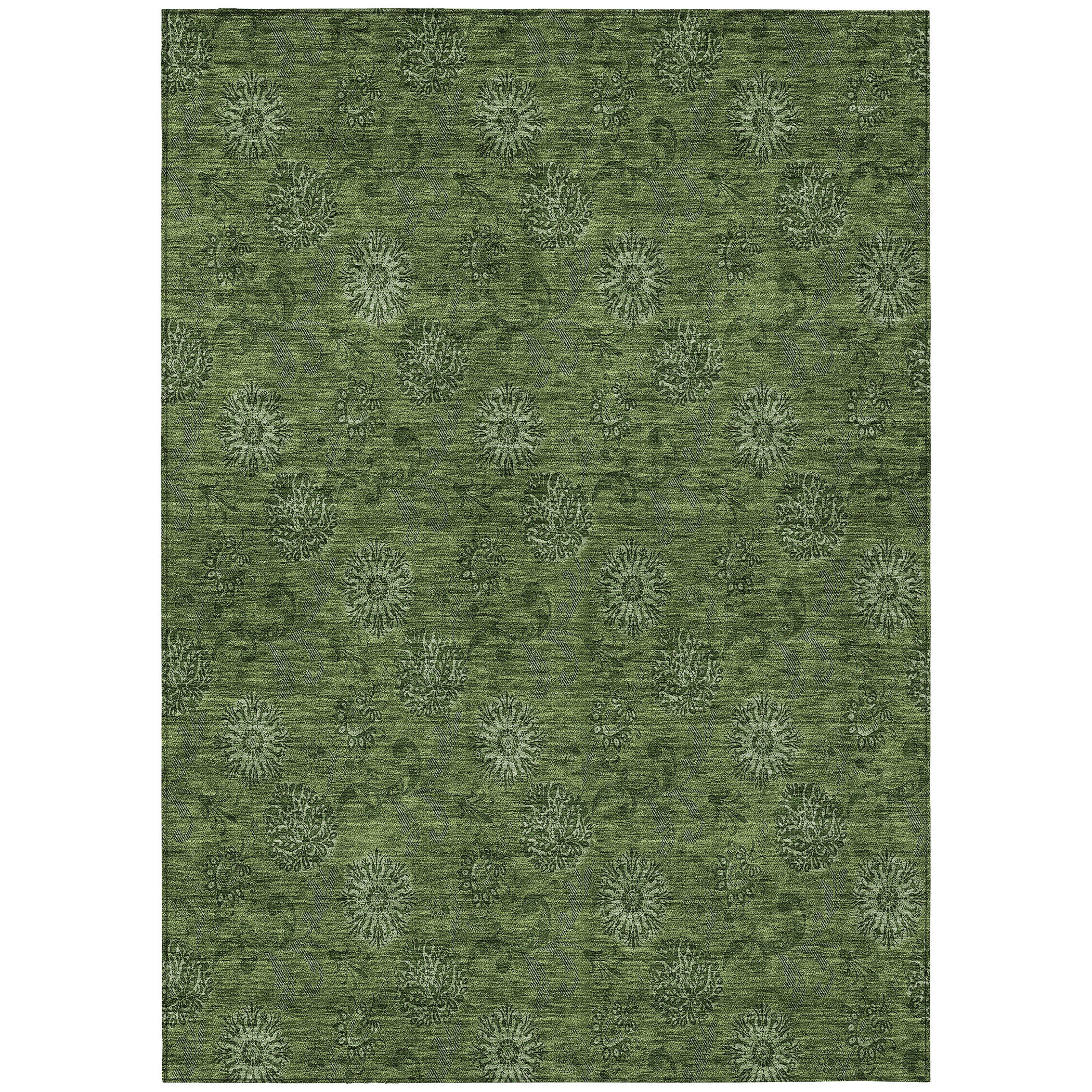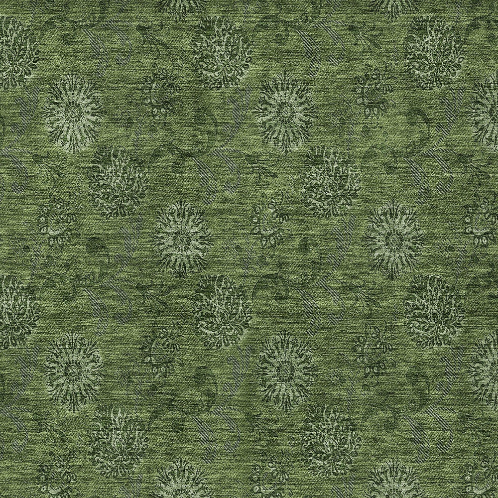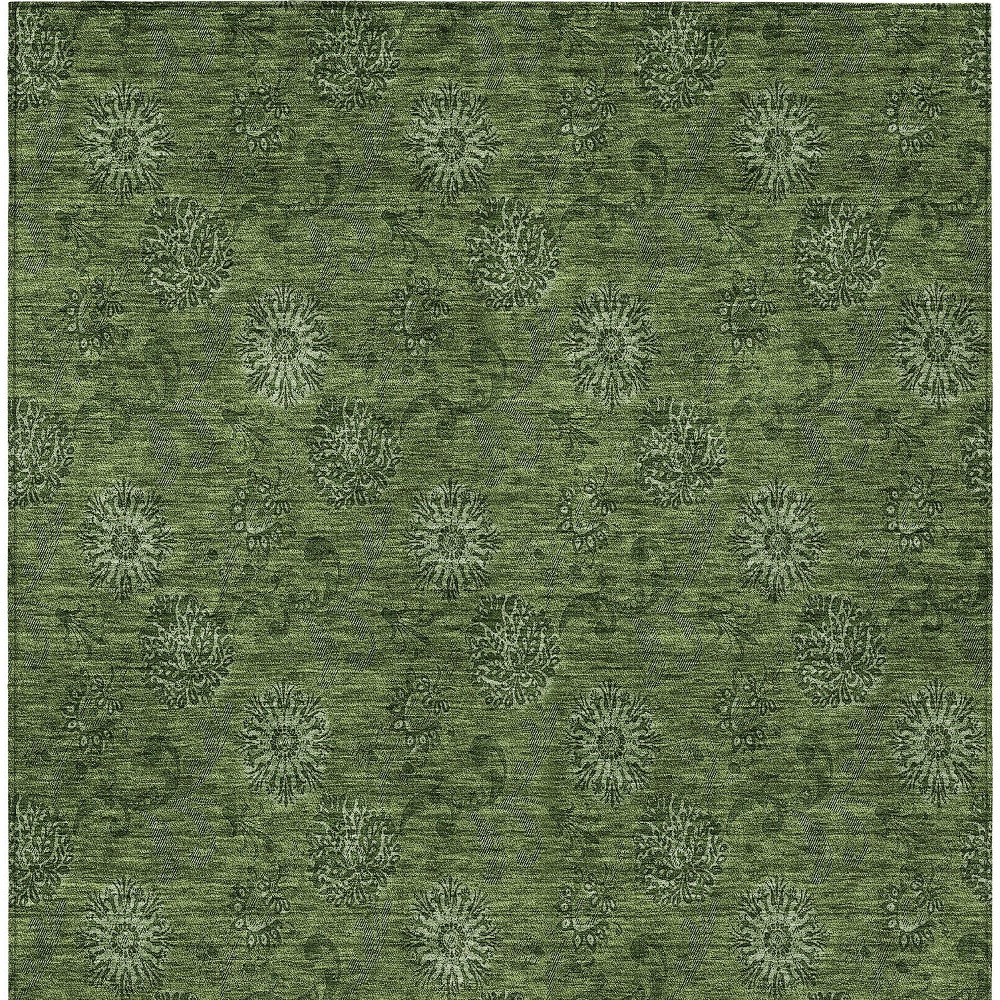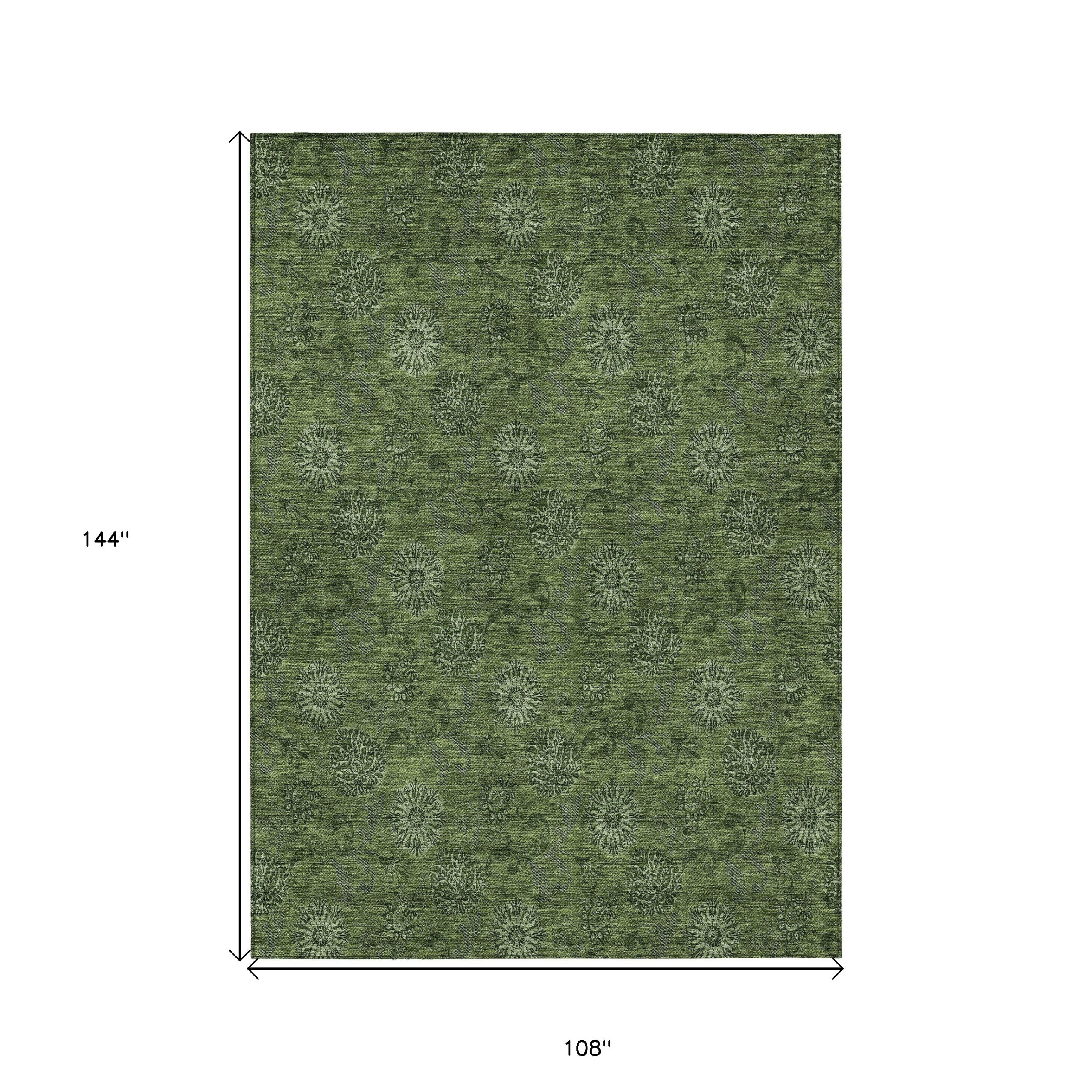 9′ X 12′ Olive Green And Green Floral Washable Indoor Outdoor Area Rug