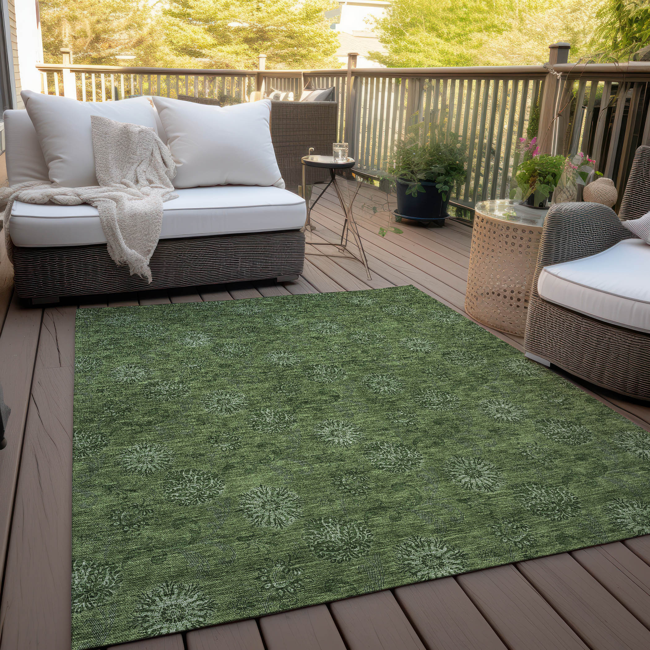 Add great coloration and comfortable texture to your space with this 9-foot x 12-foot olive green and green floral washable indoor outdoor area rug. This rectangle shaped rug features a floral design that will work well both indoors or out. A classic shape marries with good looking design for your living room, hall, bedroom, porch, patio, or poolside. Ideal for outdoor spaces or high traffic areas with kids and pets, this rug is made from heavy duty polyester that is stain resistant to help repel water, dirt, and stains. Versatile in use, durable, and easy to maintain, this rug is an ideal solution to add a decorative and inviting touch to your indoor or outdoor space. 108-inch h x 144-inch w x 0.19-inch d.