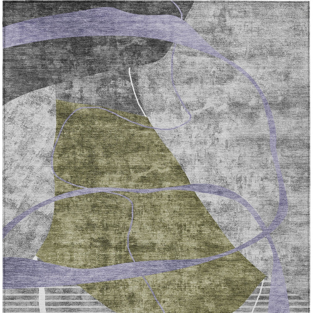 9′ X 12′ Olive Green Gray And Charcoal Abstract Washable Indoor Outdoor Area Rug