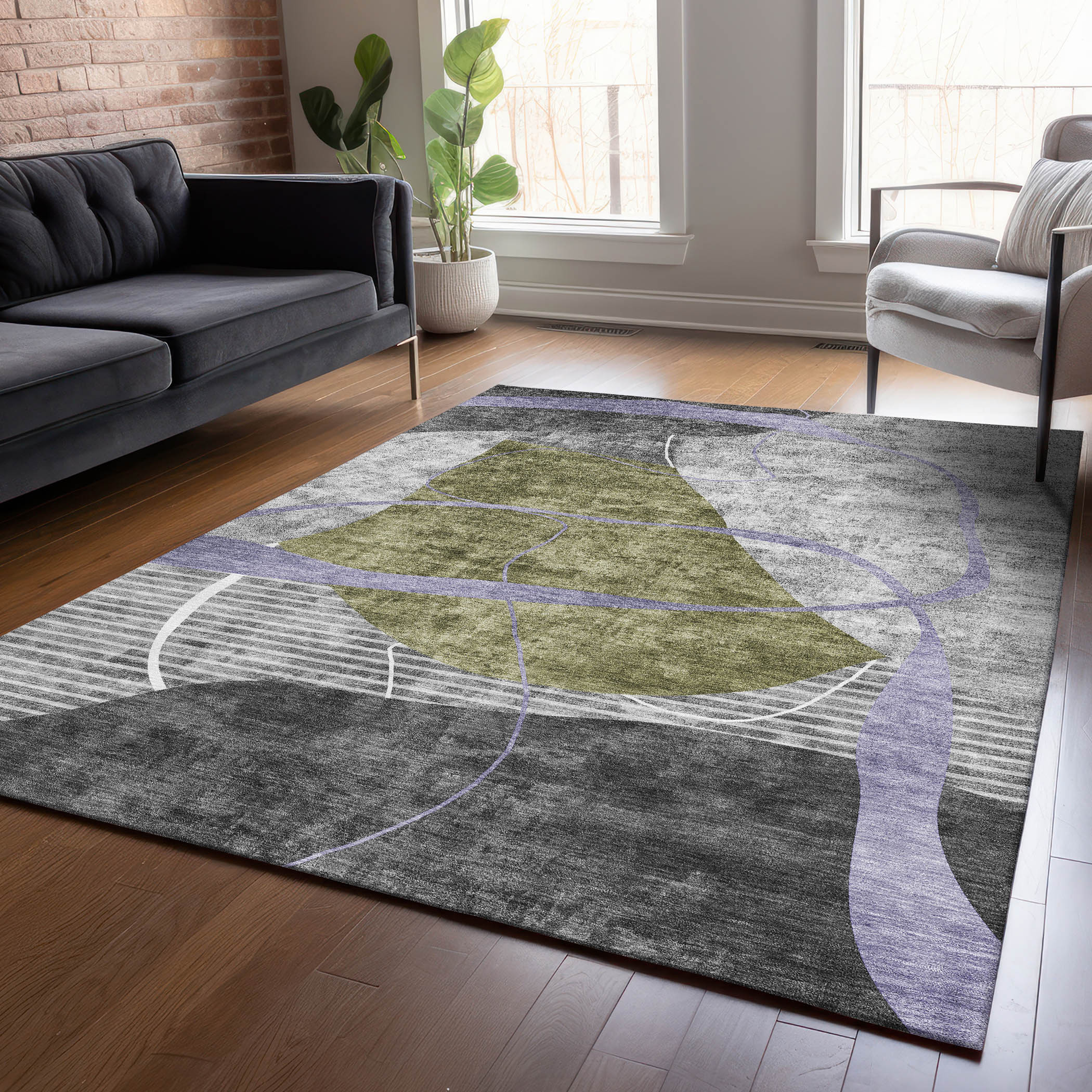 Add great coloration and comfortable texture to your space with this 9-foot x 12-foot olive green gray and charcoal abstract washable indoor outdoor area rug. This rectangle shaped rug features a abstract design that will work well both indoors or out. A classic shape marries with good looking design for your living room, hall, bedroom, porch, patio, or poolside. Ideal for outdoor spaces or high traffic areas with kids and pets, this rug is made from heavy duty polyester that is stain resistant to help repel water, dirt, and stains. Makes a great way to dress up your patio, porch, or poolside, but also works well as a durable and easy to maintain option in the kitchen, family room, or mudroom. 108-inch h x 144-inch w x 0.19-inch d.