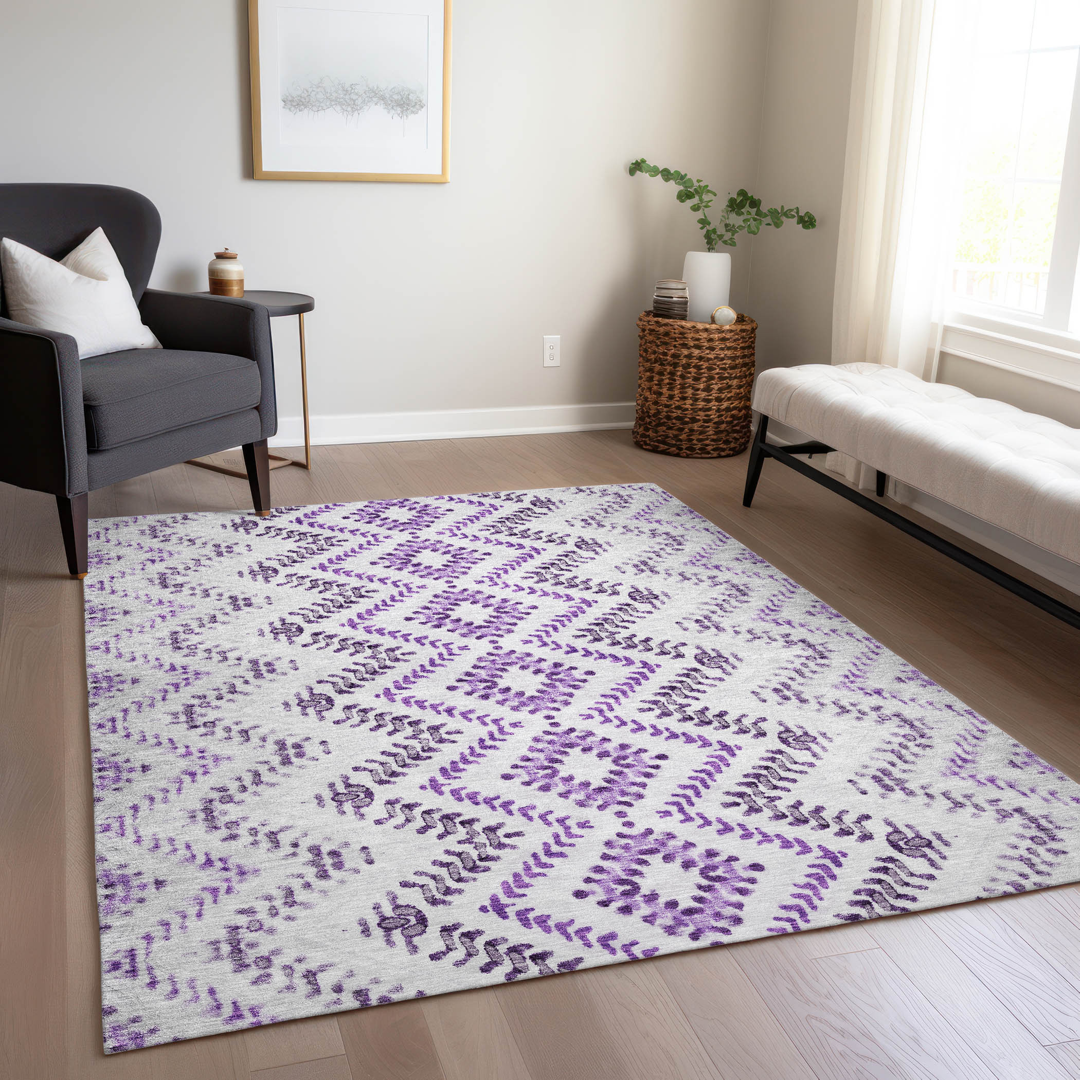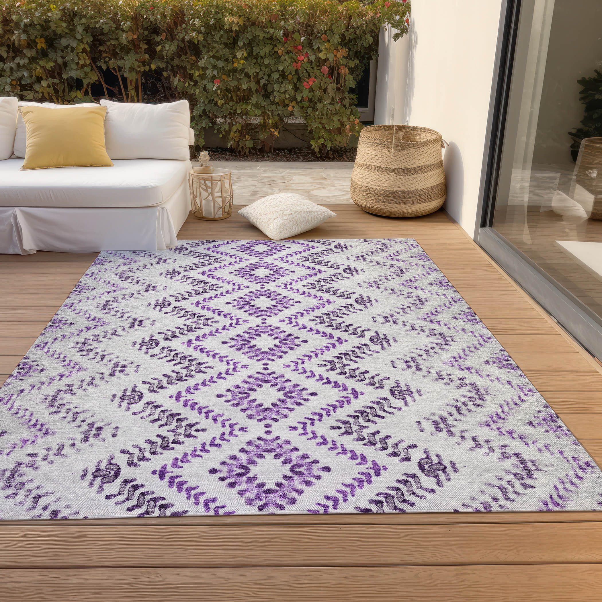 9′ X 12′ Purple Eggplant And Lavender Geometric Washable Indoor Outdoor Area Rug