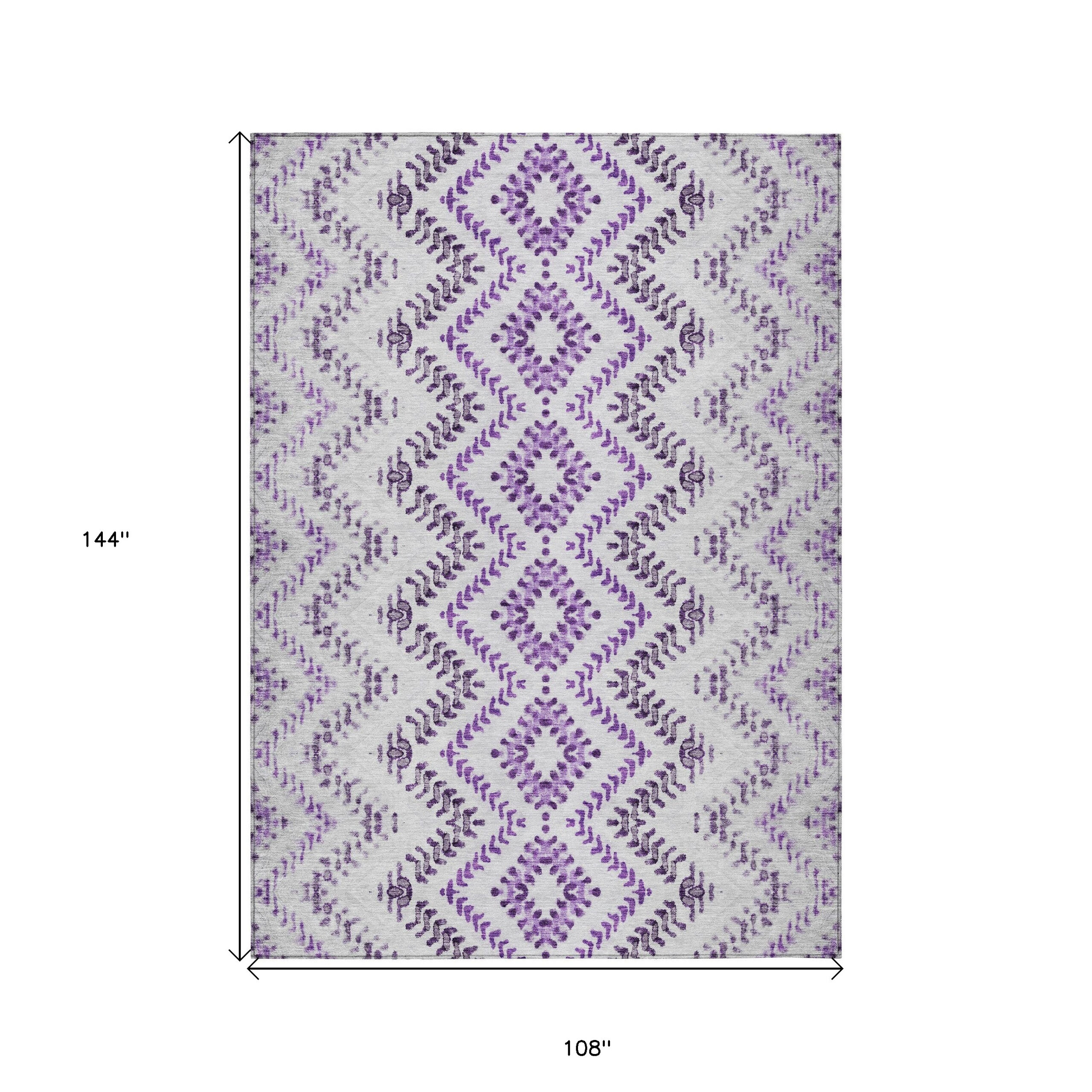 9' X 12' Purple Eggplant And Lavender Geometric Washable Indoor Outdoor Area Rug