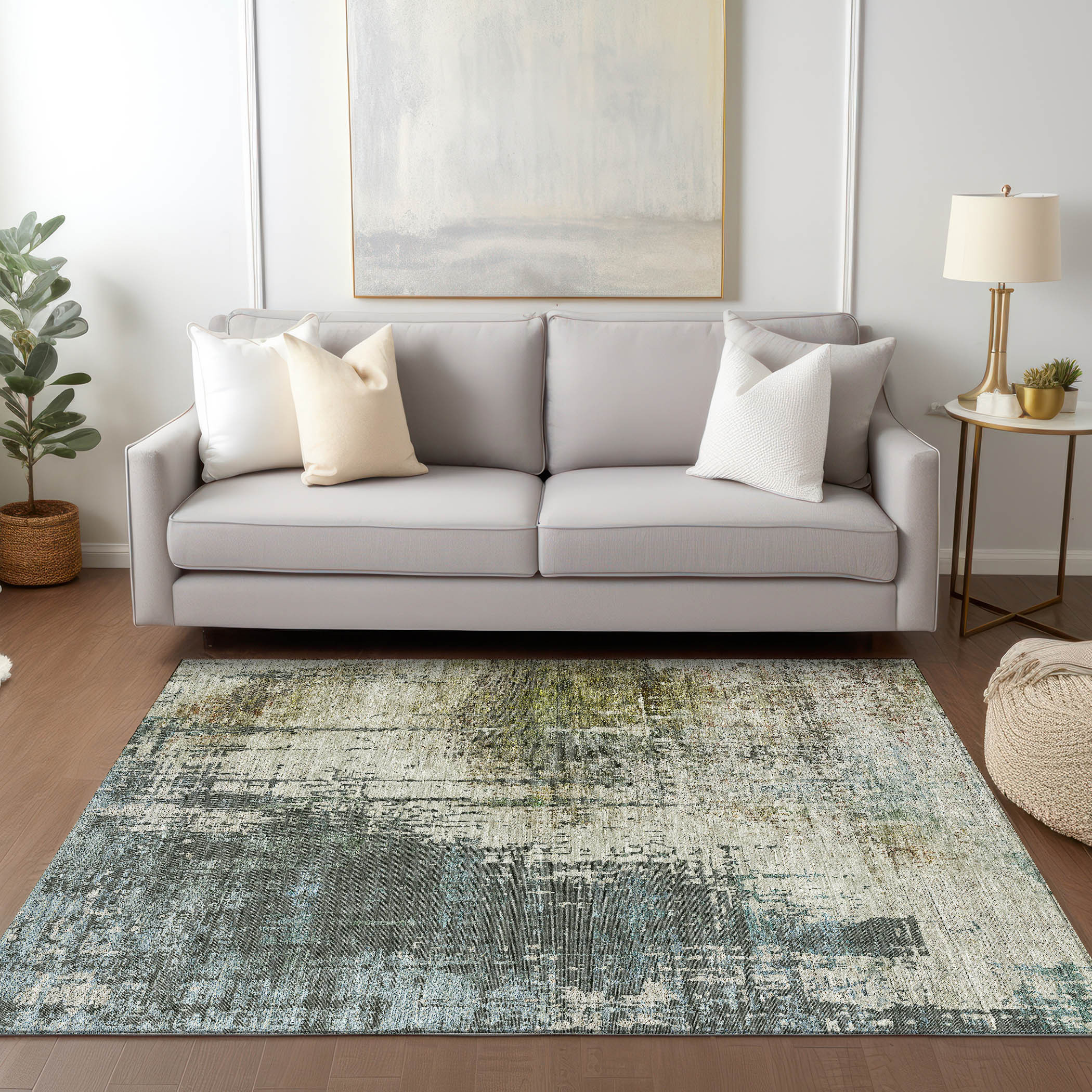 Add great coloration and comfortable texture to your space with this 9-foot x 12-foot sage beige and brown abstract washable indoor outdoor area rug. This rectangle shaped rug features a abstract design that will work well both indoors or out. A classic shape marries with good looking design for your living room, hall, bedroom, porch, patio, or poolside. Ideal for outdoor spaces or high traffic areas with kids and pets, this rug is made from heavy duty polyester that is stain resistant to help repel water, dirt, and stains. Versatile in use, durable, and easy to maintain, this rug is an ideal solution to add a decorative and inviting touch to your indoor or outdoor space. 108-inch h x 144-inch w x 0.19-inch d.
