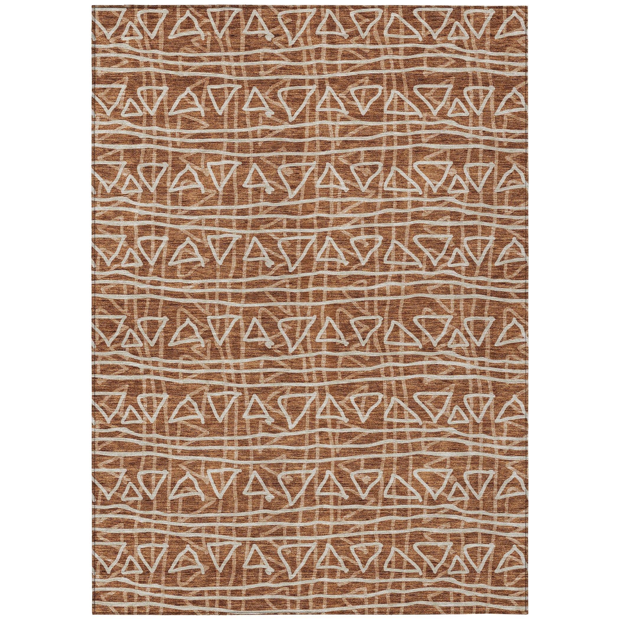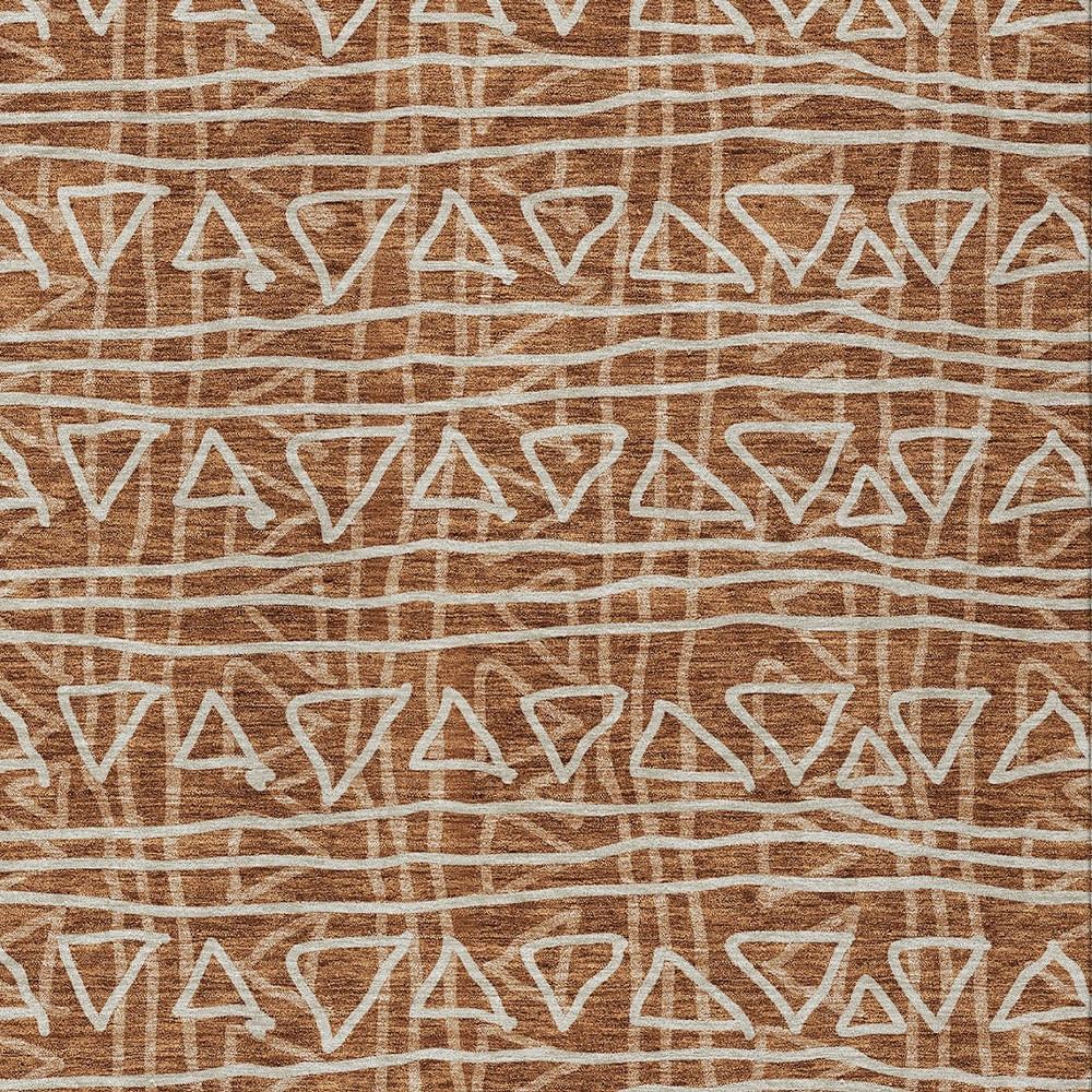 9′ X 12′ Terra Cotta Copper And Beige Geometric Washable Indoor Outdoor Area Rug