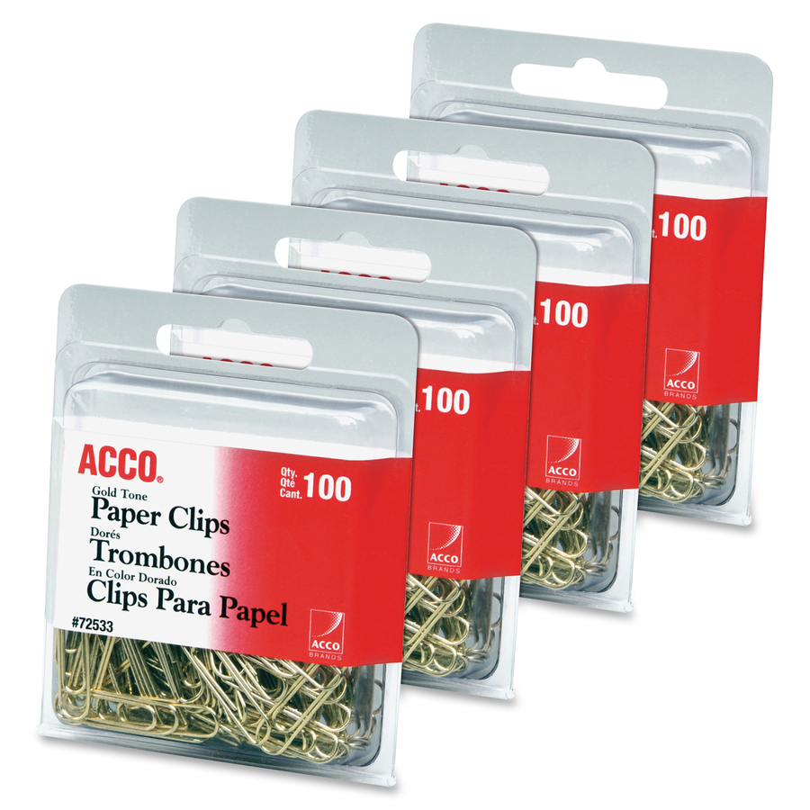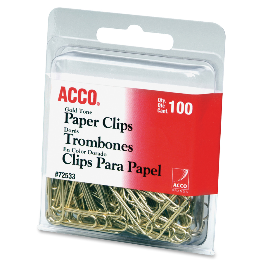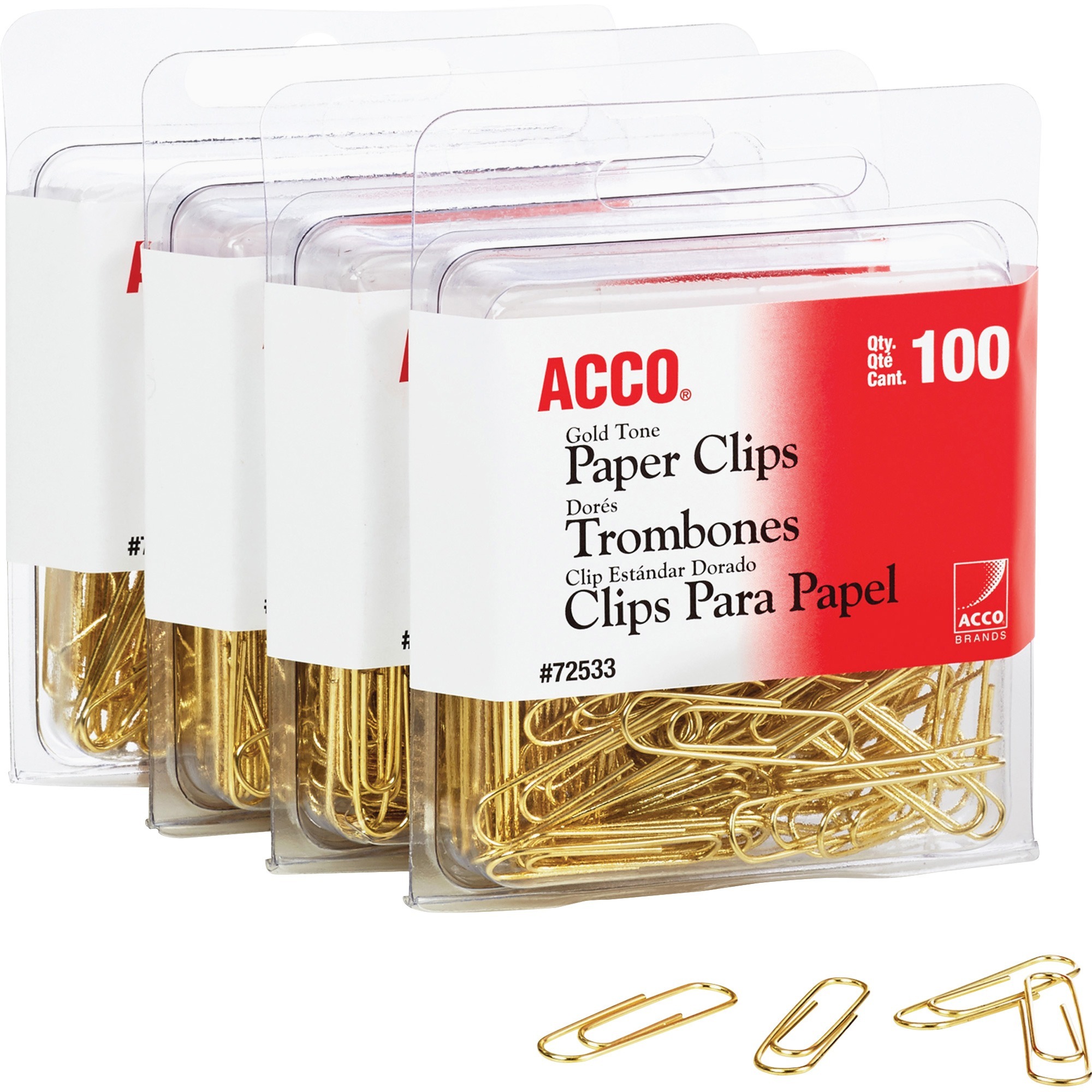 ACCO Gold Tone Paper Clips – No. 2 – 1.4″ Length x 0.5″ Width – 10 Sheet Capacity – for Office, Home, School, Document, Paper – Sturdy, Flex Resistant, Bend Resistant – 400 / Pack – Gold