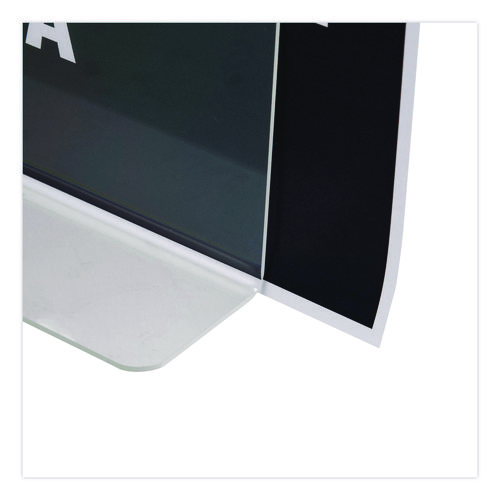 Sign, photo or certificate slides in easily. Crystal clear choice in sign display.