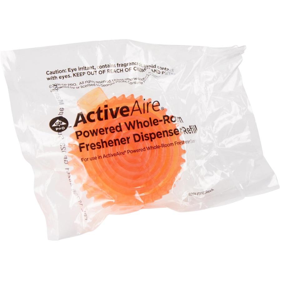 | Marketing Information | <p>Designed for Georgia Pacific ActiveAire Powered Whole-Room Freshener Dispensers, these air freshener refills help stop odors and enhance the restroom experience for all with its pleasantly scented, odor-neutralizing formula. Sustained release provides freshness for at least 30 days. Easy access allows easy maintenance. Citrus fragrance is a fresh, lively scent that brings to mind handpicked fruit, lemon and mandarin with a subtle hint of pomegranate and sandalwood. Urinal screens (not included) are available in a matching scent so you can be confident your restrooms will provide a consistent and more welcoming experience. Air freshener refills are compliant for VOC content with applicable federal and state regulations. No liquids or sprays are used. Refills belong to Georgia-Pacific's Take Back Program for recycling.</p> |
