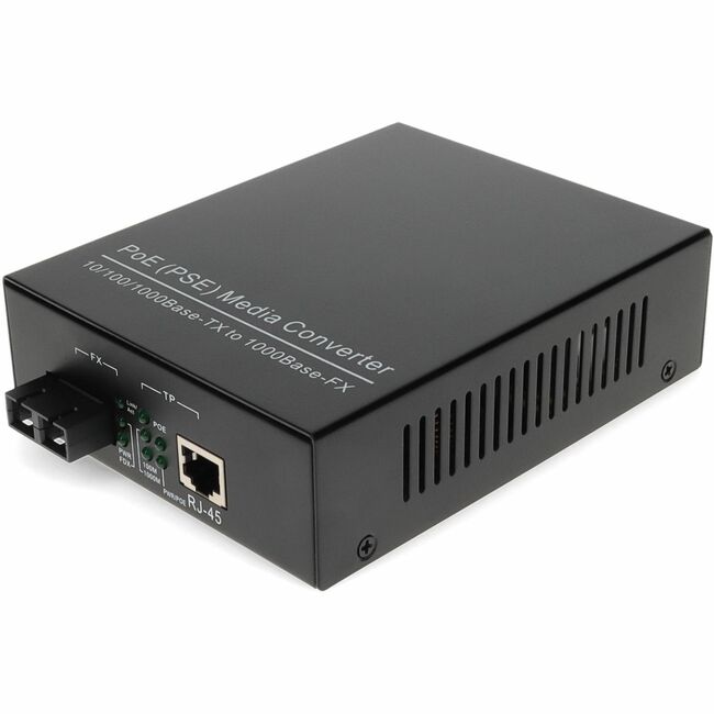 AddOn 10/100/1000Base-TX(RJ-45) to 1000Base-MX(SC) MMF 1310nm 2km IEEE802.3at/48V/1.0A/50W POE Media Converter