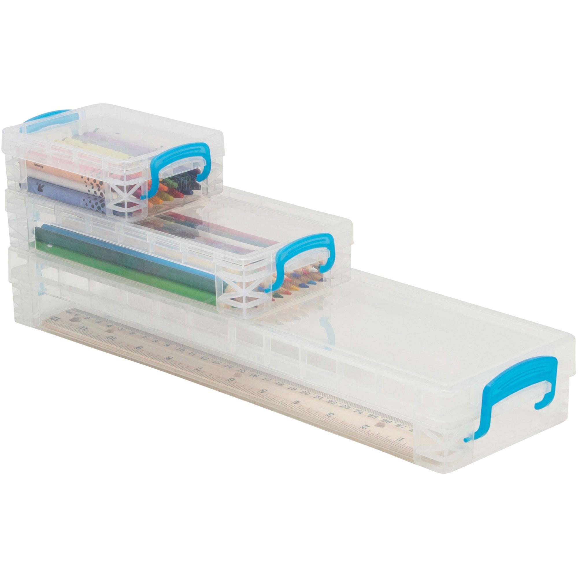 | Marketing Information | <p>This family of stackable storage boxes feature snap-tight lids to keep your contents secure. Stackable design allows you to stack multiple boxes on top of each other for space-saving storage. Clear construction allows you to easily see the contents contained for quick retrieval. The crayon box stores 24 standard-size crayons. Pencil box stores more than 50 pencils, 25 pens and 20 markers. Ruler box stores a 12" ruler, 45 pens or pencils, or 20 markers. Stackable storage is perfect for the office, school and home.</p> |