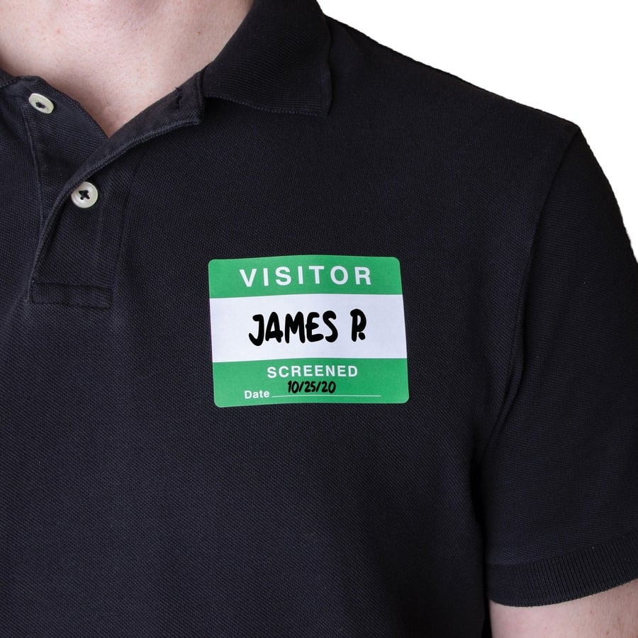 | Marketing Information | <p>Promote safety and peace of mind using these Adhesive Badges that read, "Visitor Screened, " along with the date. They identify visitors screened at entry for facility access or COVID symptoms and offer a large white space to write the visitor's name. Using highly visible identification as part of your reopening strategy shows guests you're doing your part to ensure their safety. Simple, adhesive badges are perfect for offices, hospitals, doctors' offices, government buildings and schools.</p> |