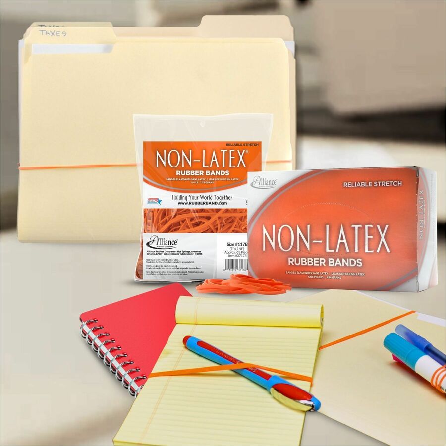 Alliance Rubber 37338 Non-Latex Rubber Bands – Size #33 – 1/4 lb. poly bag contains approx. 180 bands – 3 1/2″ x 1/8″ – Orange