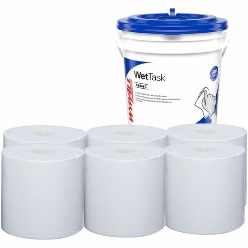 Wypall Power Clean WetTask Wipers for Disinfectants, Sanitizers and Solvents – 12″ x 6″ – 140 Sheets/Roll – White – Hydroknit – Disinfectant – 1 Rolls Per Bucket – 6 / Carton