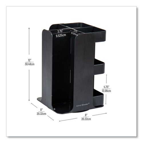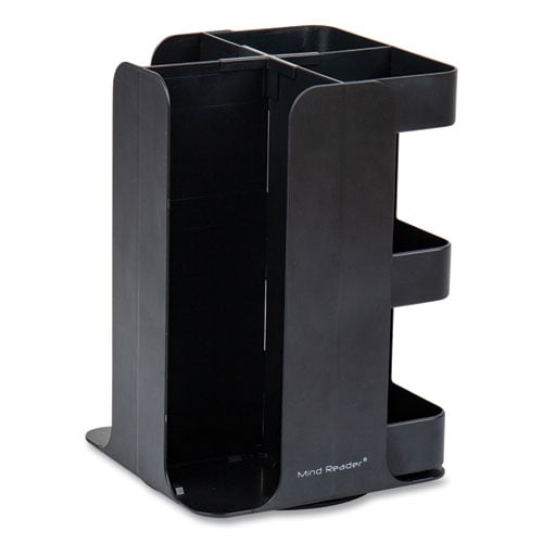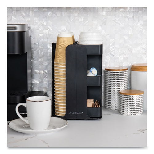 Anchor Collection 8-Compartment Coffee Cup, Lid, and Condiment Carousel Countertop Organizer, 8 x 8 x 12, Black