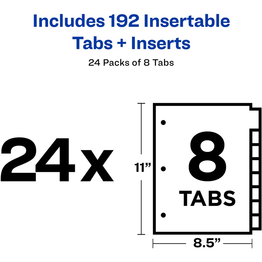 Avery® Big Tab Insertable Dividers – 192 x Divider(s) – 8 Tab(s) – 8 – 8 Tab(s)/Set – 8.5″ Divider Width x 11″ Divider Length – 3 Hole Punched – Buff Paper Divider – Clear Plastic Tab(s) – 192 / Box