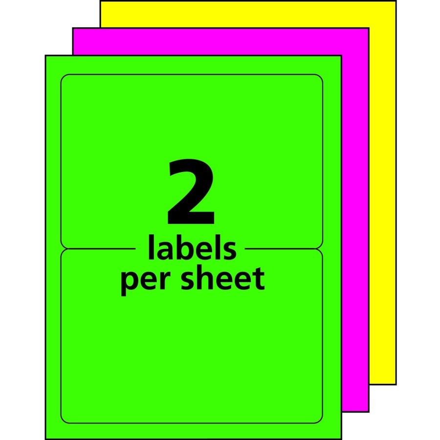 Avery® High Visibility Neon Shipping Labels – 5 1/2″ Height x 8 1/2″ Width – Permanent Adhesive – Rectangle – Laser – Neon Magenta, Neon Green, Neon Yellow – Paper – 2 / Sheet – 500 Total Sheets – 1000 Total Label(s) – 5 / Carton